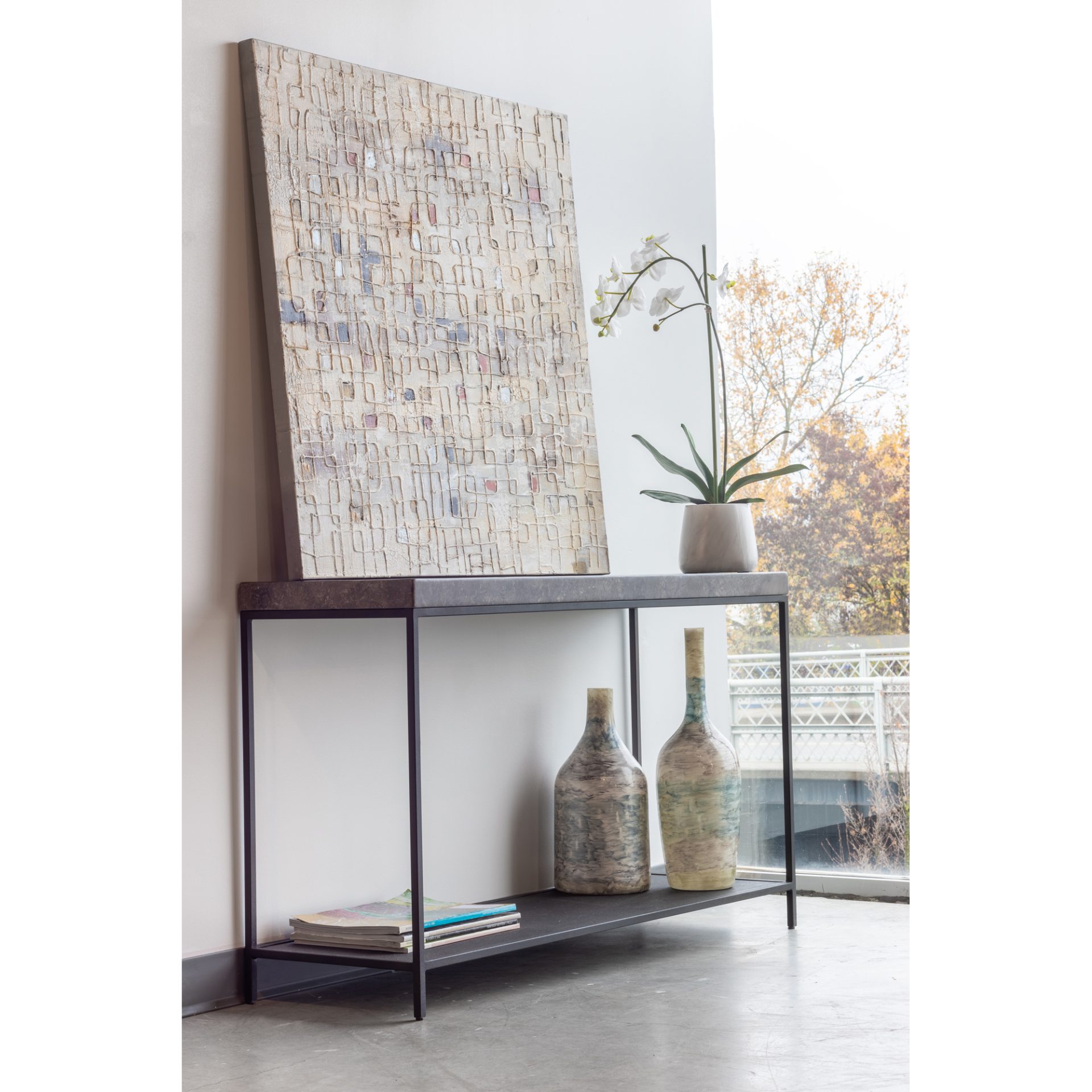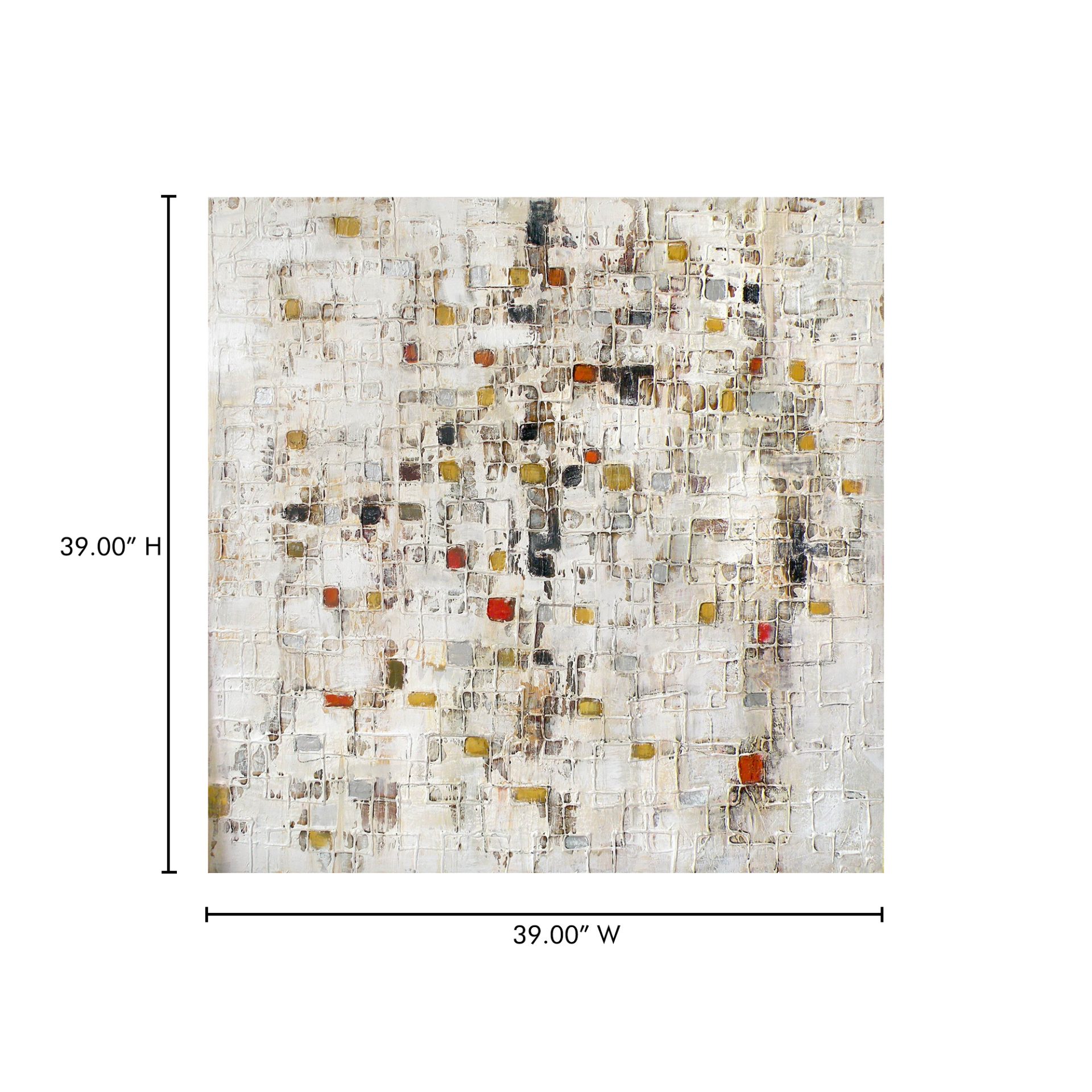Even a monochrome Décor needs a little color. This painting has tiny squares, mostly white, but with a few dabs of color. The hand-painted acrylic on canvas gives it an authentic work of art appeal.