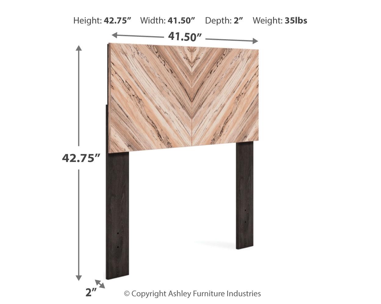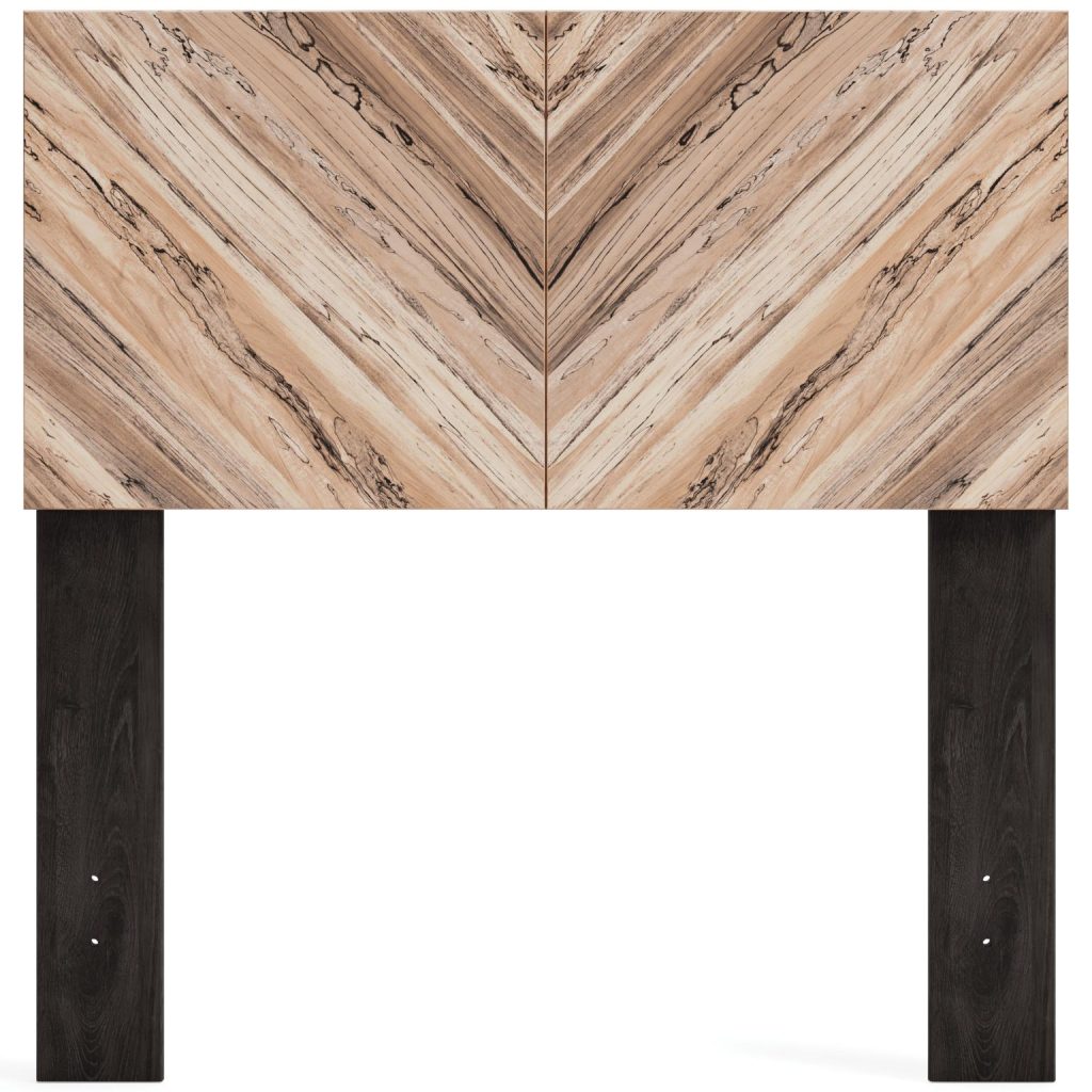 The perfect marriage of contemporary and casual style,,,, this twin panel headboard is a charming addition to your home. This headboard is expressive with its warm and inviting replicated sugarberry wood grain pattern.