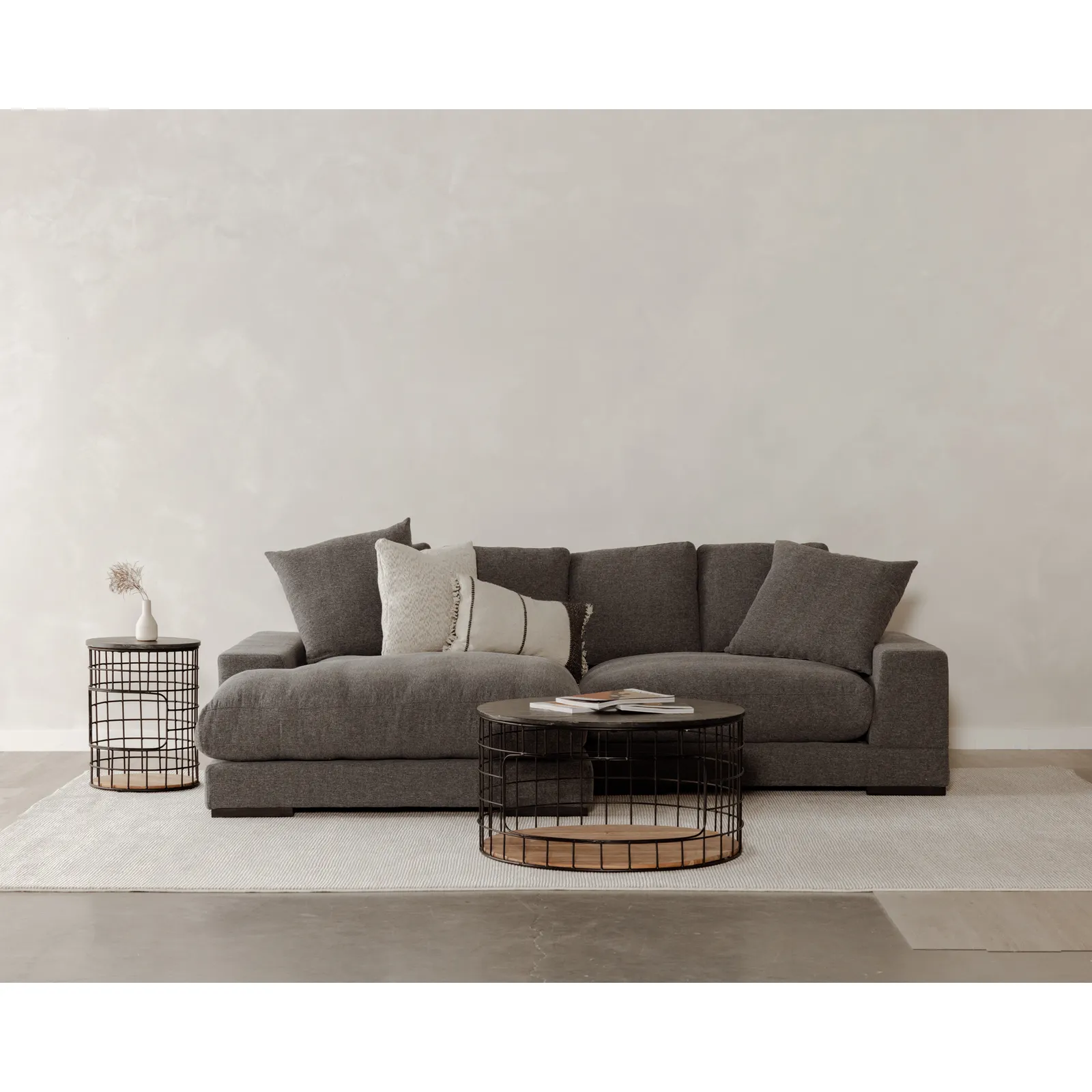 A fusion of comfort and elegance with clean lines and plush cushions, the Plunge sectional is masterfully crafted to maximize space and provide unparalleled relaxation. Its versatile flip chaise feature allows a left or right-side orientation that effortlessly adapts to create a sanctuary of style and repose, while its improved channeling and filling distribution ensures soft landings and comfort for years to come.