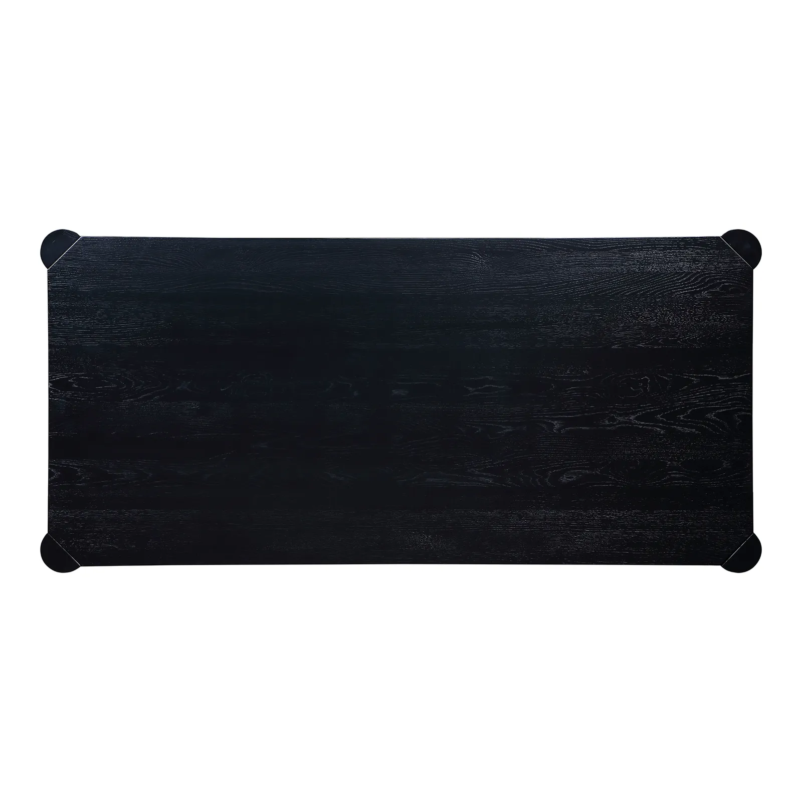 - Blackened, solid white oak with a semi-gloss finish
