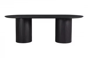 A convergence of shape and form, the Povera dining table will serve as the pillar of your dining area. Povera features two large columns supporting an expansive tabletop, their gentle ribbing reminiscent of ripples and waves. With a rich black finish featuring a soft purple undertone that allows the natural wood grain of the Acacia wood to show through, this dining table uses simple geometry and natural materials to form an experience. Offering bold statement appeal, Povera incorporates the elegance of ratio into your dining area.