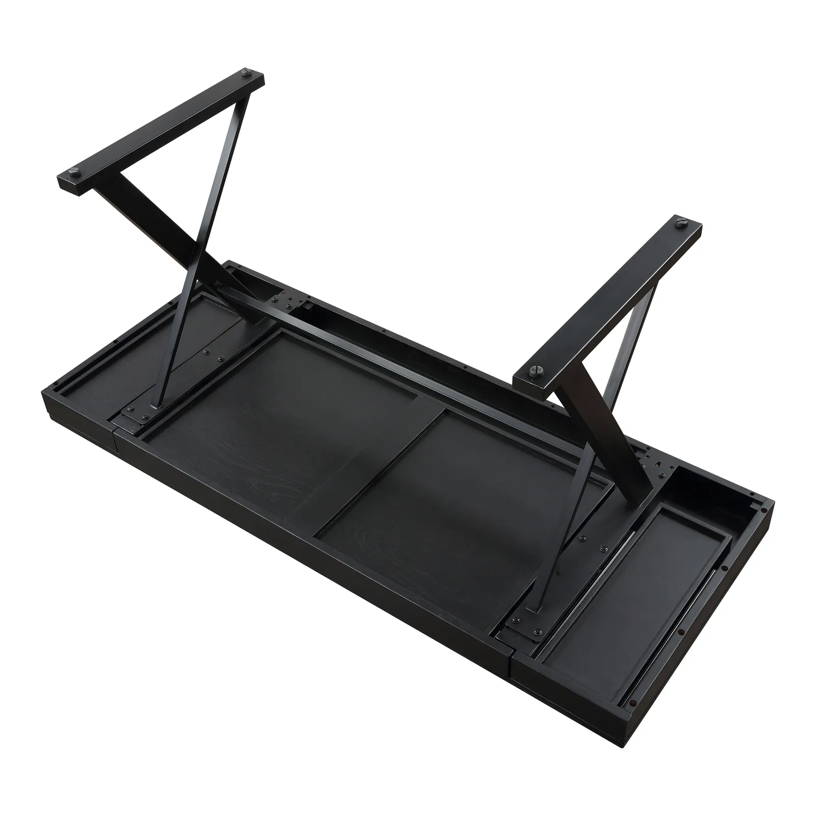 - Sculptural, trestle style base design with a supportive, full-length crossbar under the tabletop