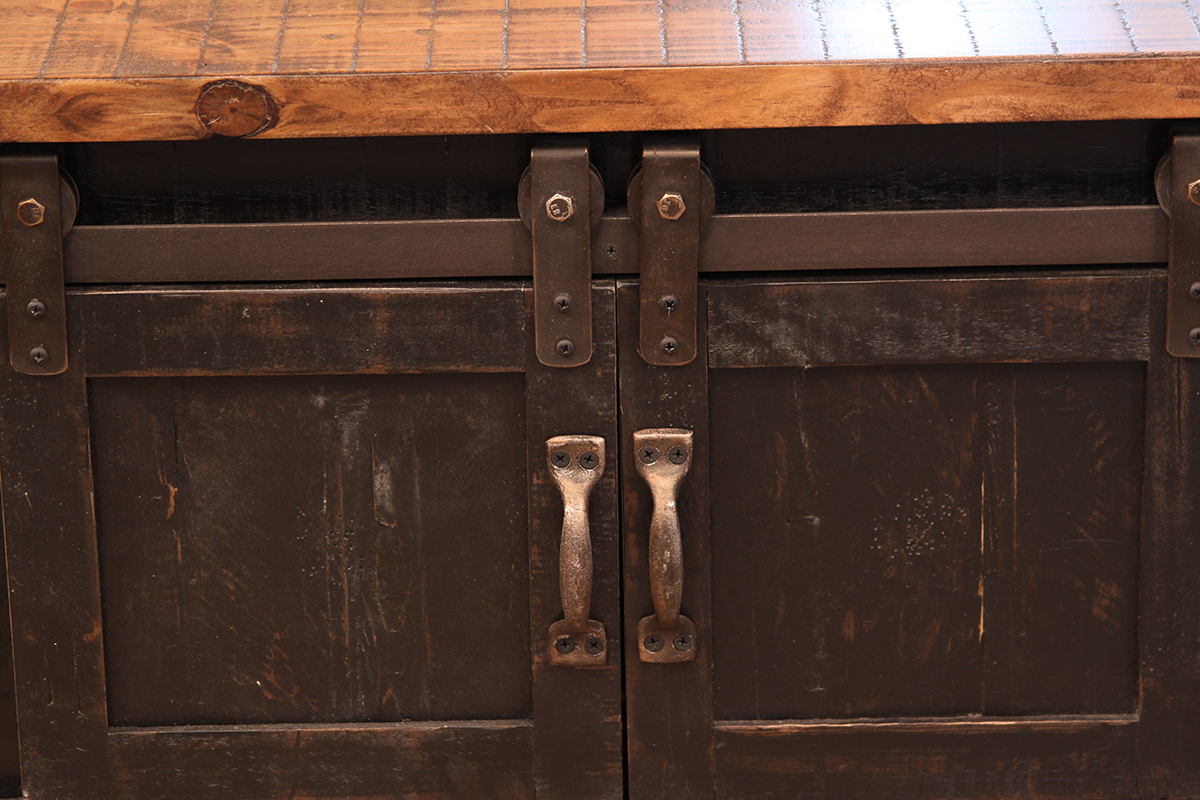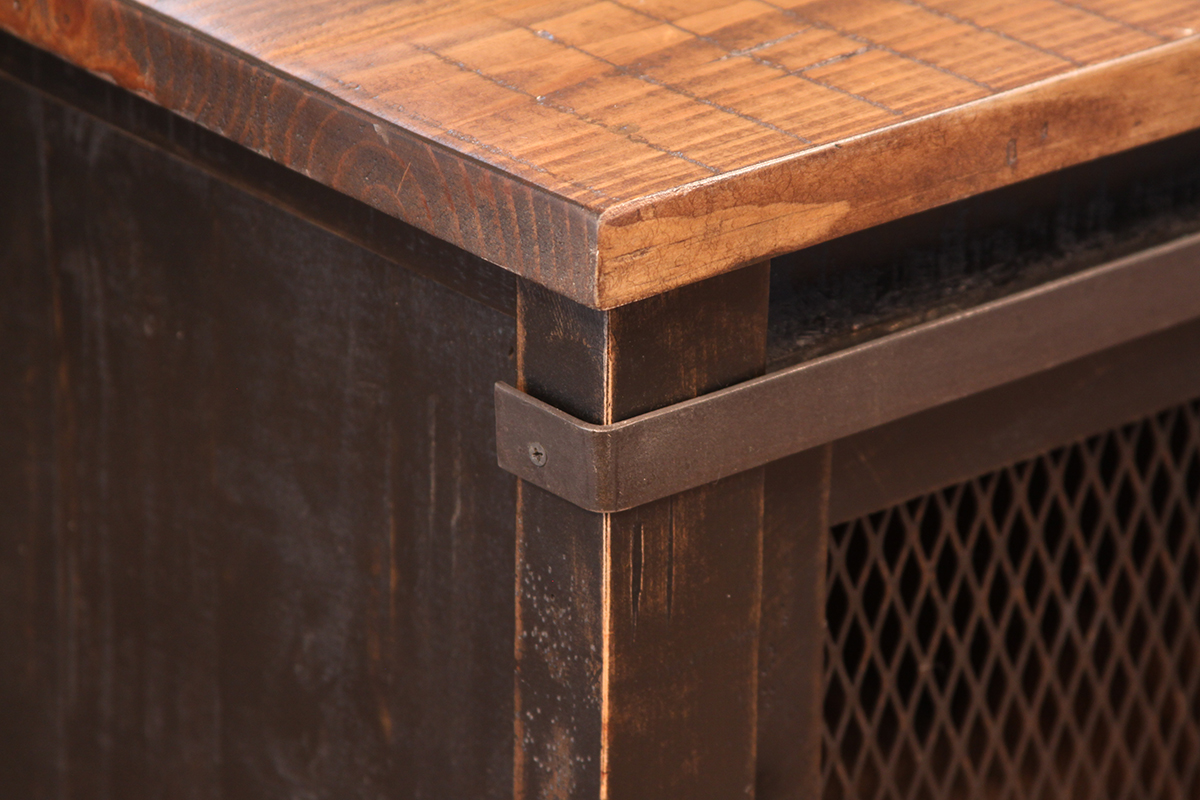 Pueblo Black 2 Sliding Doors, 2 Metal Mesh Doors Sofa Table