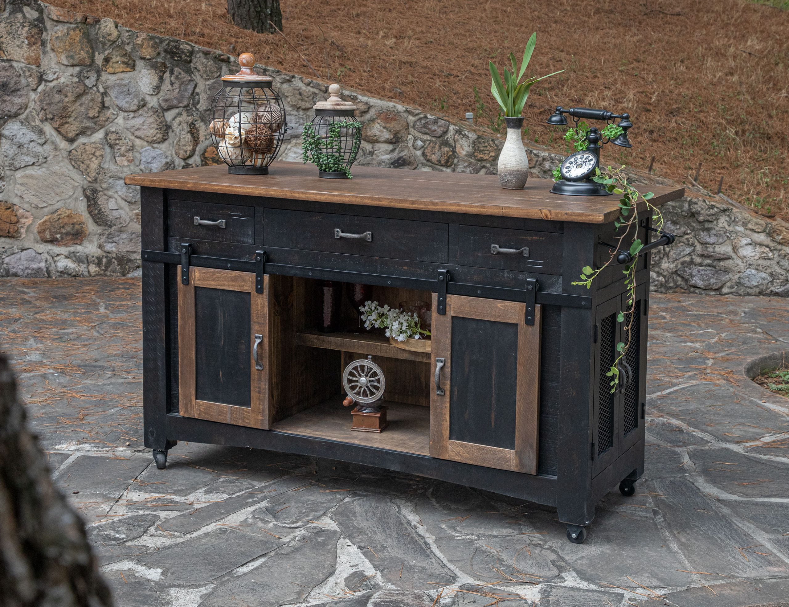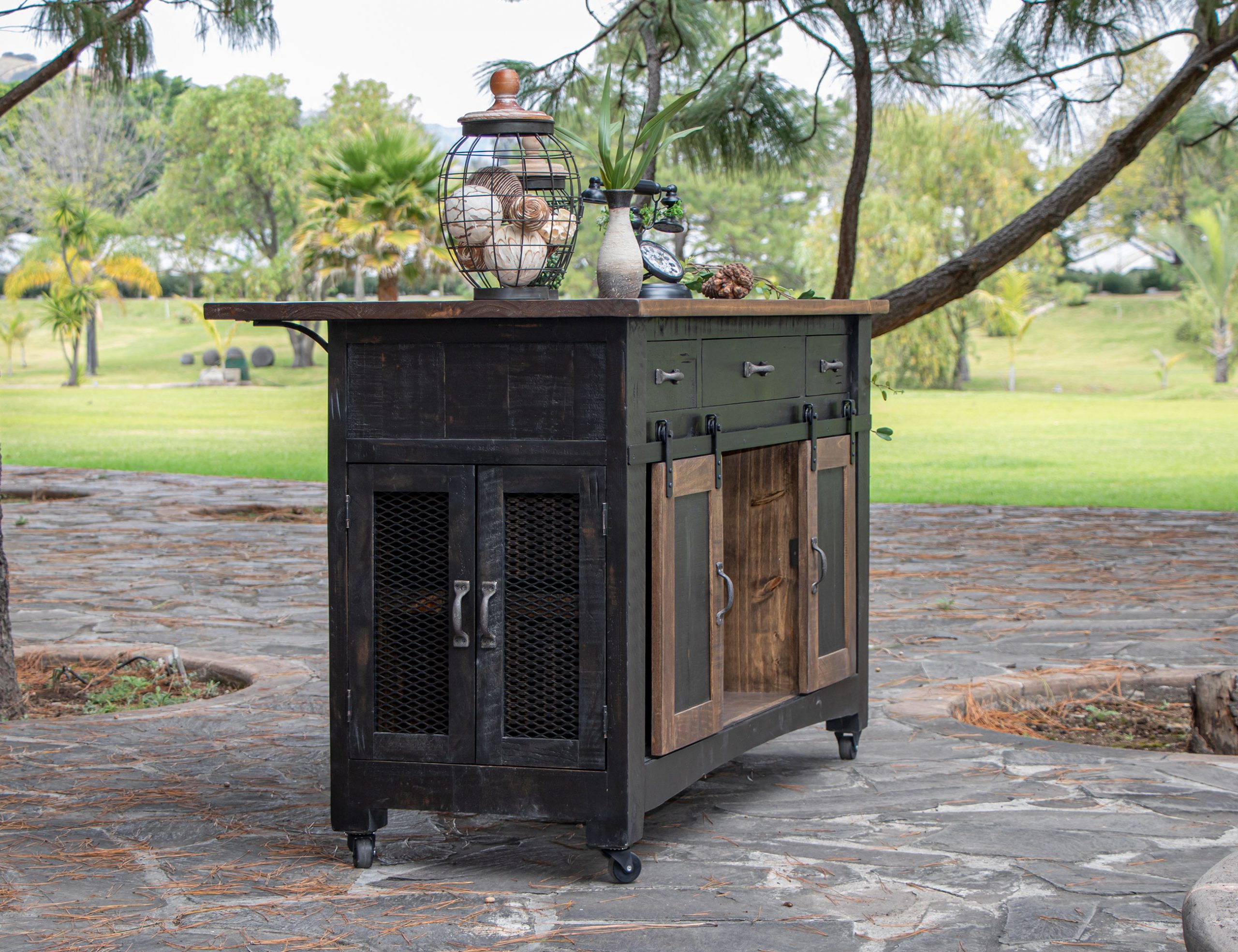 Pueblo Black 3 Drawer, 2 Sliding Doors, 4 Mesh Doors Kitchen Island