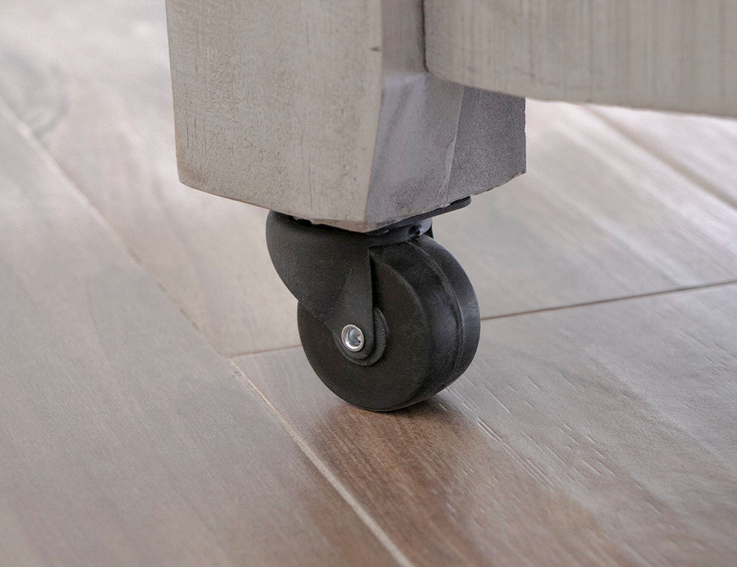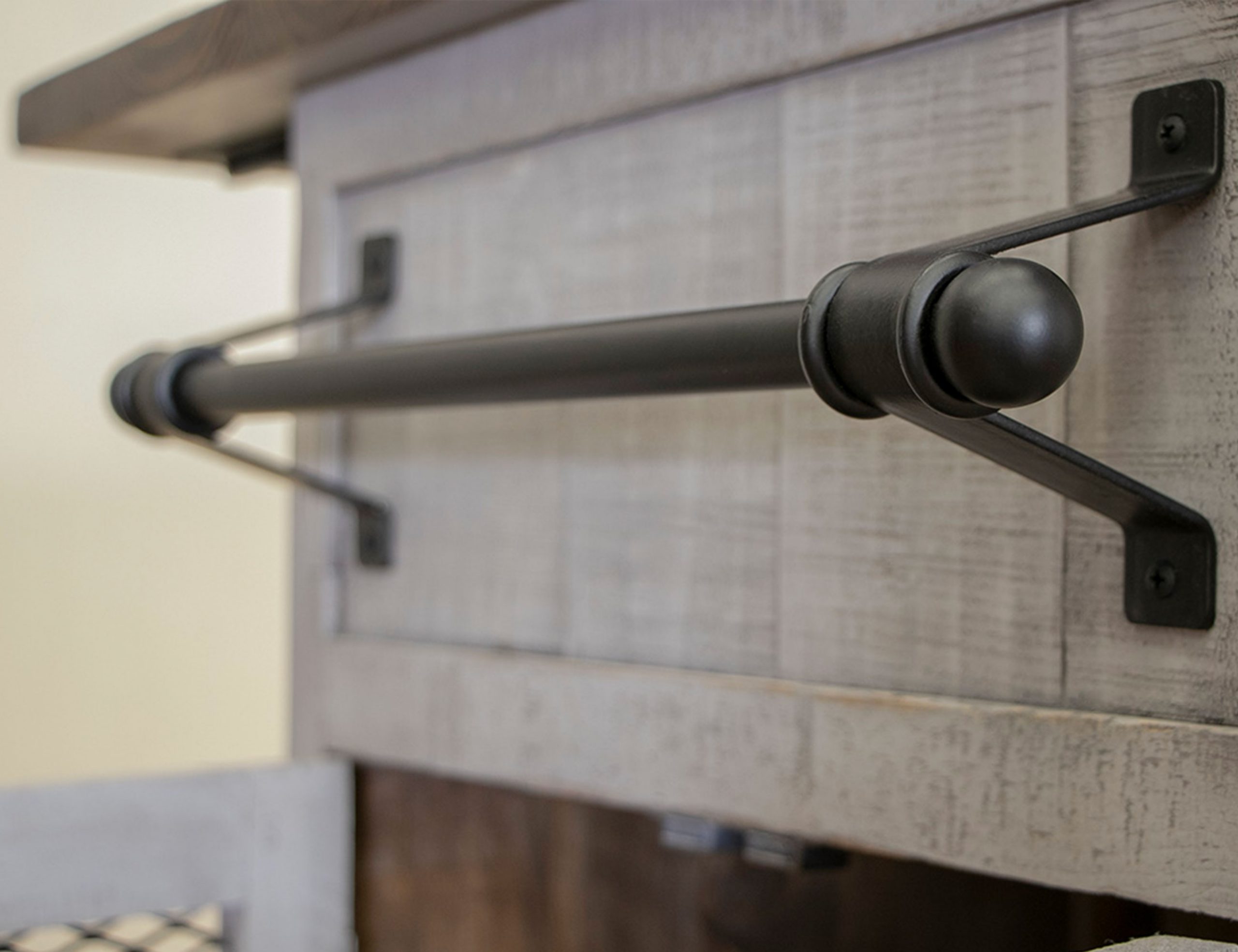 • A multi-step acrylic water-based lacquer in a sophisticated gray finish adds texture to the wood grain, while brown tones enhance the tops.