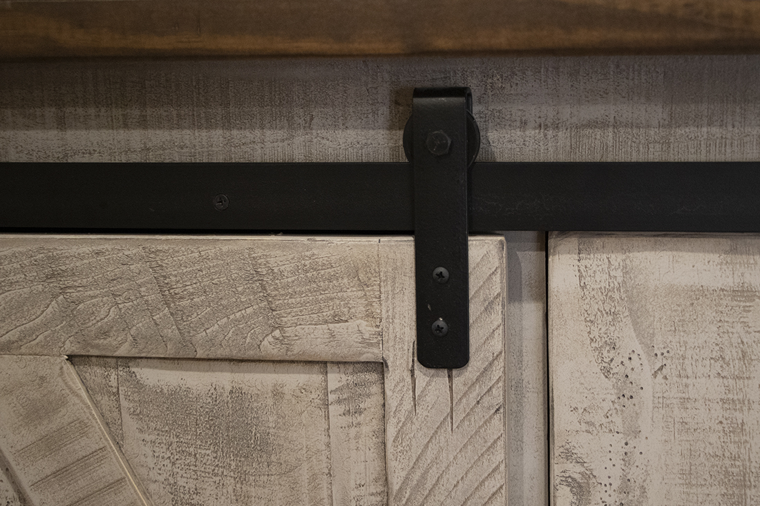 • Sliding barn-style doors offer convenience and rustic appeal.