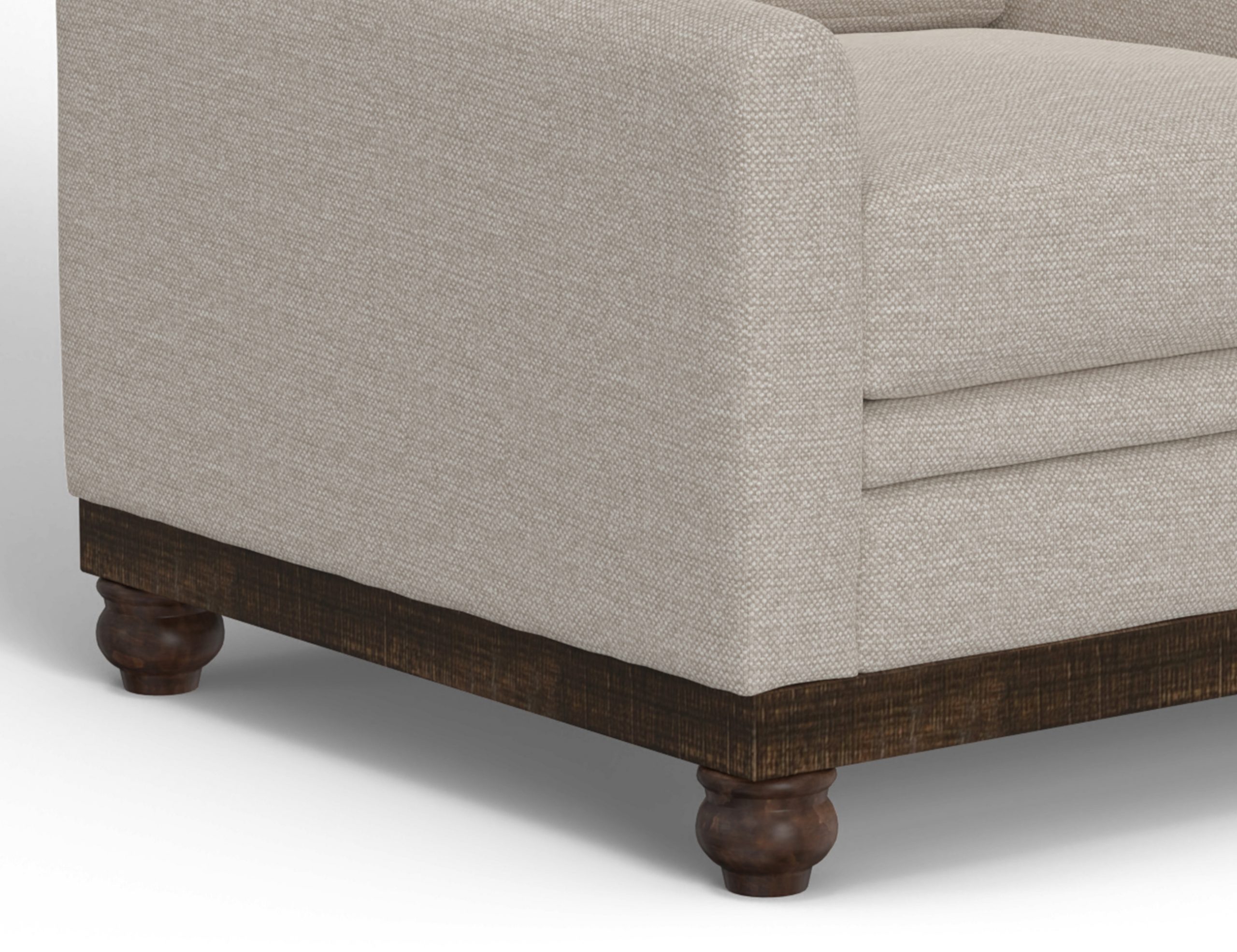 • Get cozy and make yourself at home on this Loveseat, the focal point of your living room. Crafted with a solid wood frame and hand-turned legs, it exudes a natural charm while ensuring long-lasting durability.