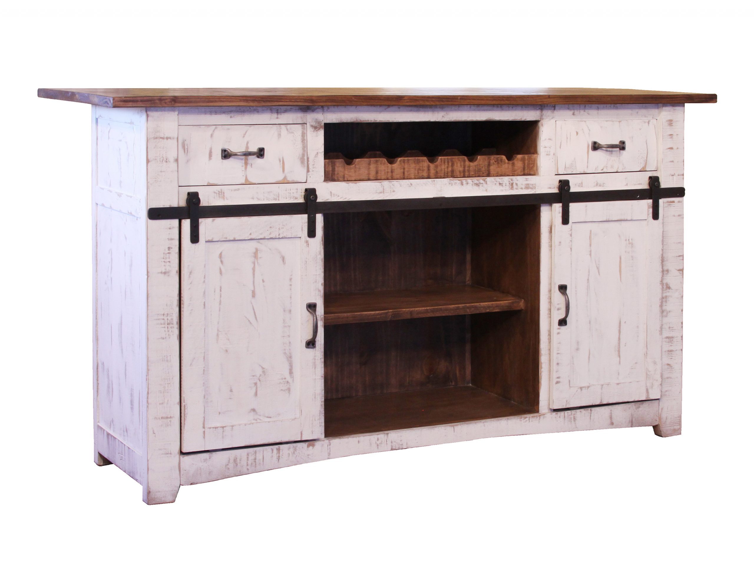 • Introducing our Pueblo White collection, crafted from solid pine wood. This rustic collection is the perfect addition to bring your dream space to life. It features a hand-distressed finish in white and brown on the tops.