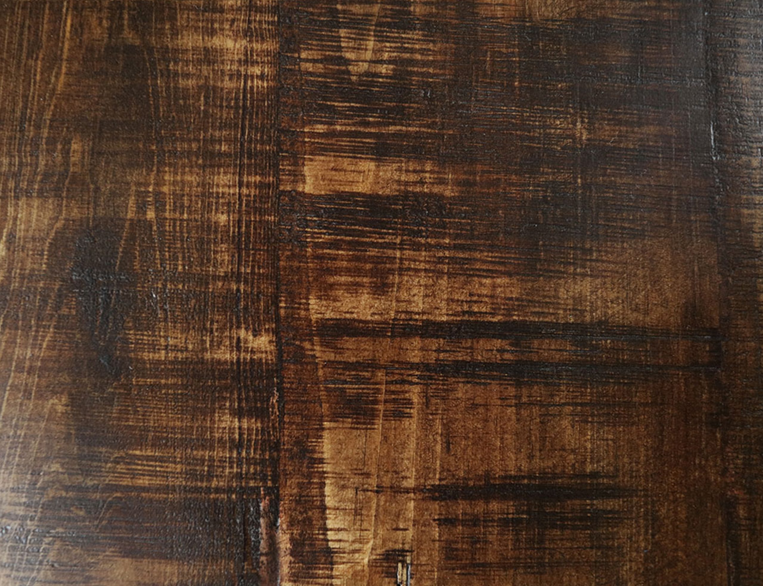 • Two-tone, multi-step lacquer finish with a weathered white effect on hand-distressed wood and brown tops.