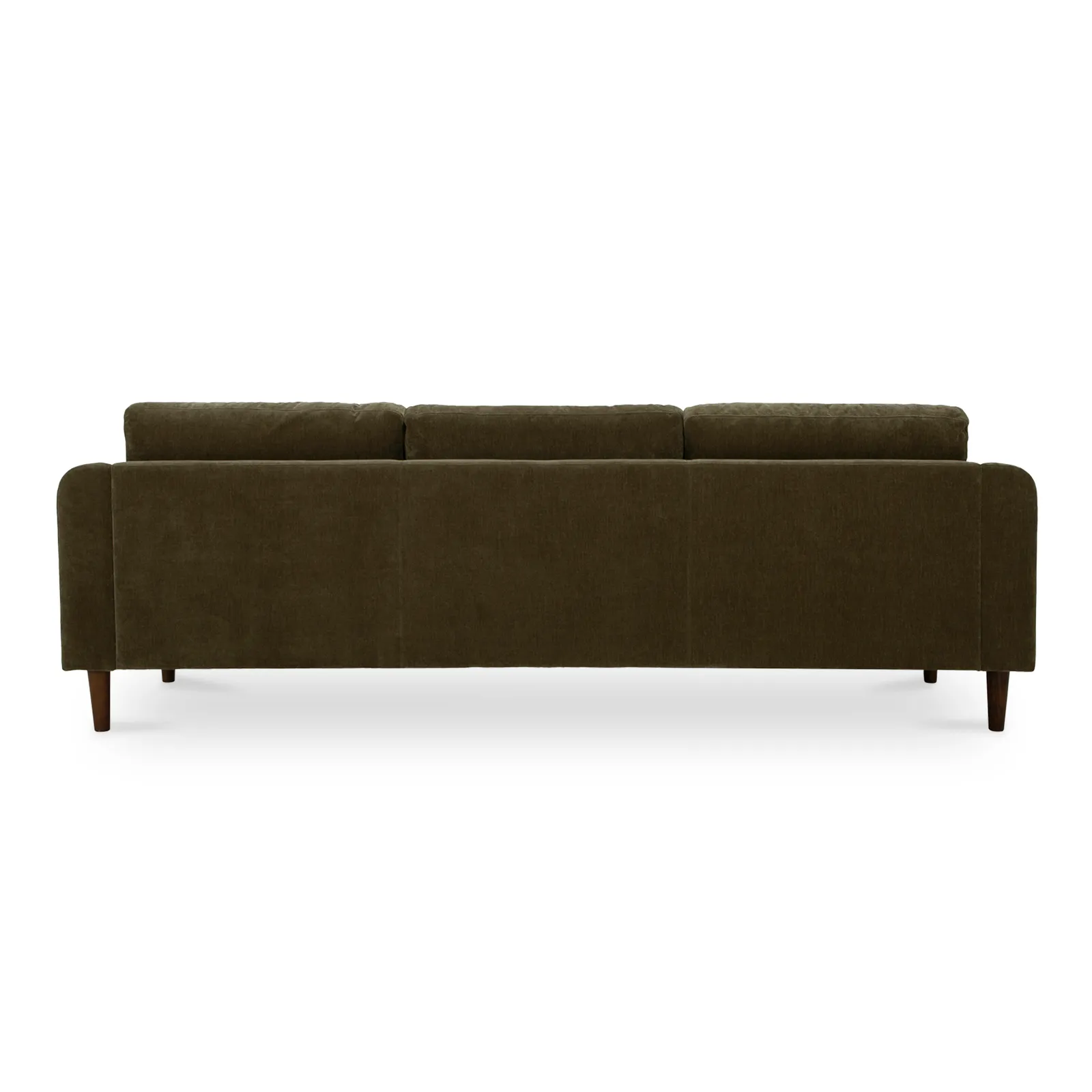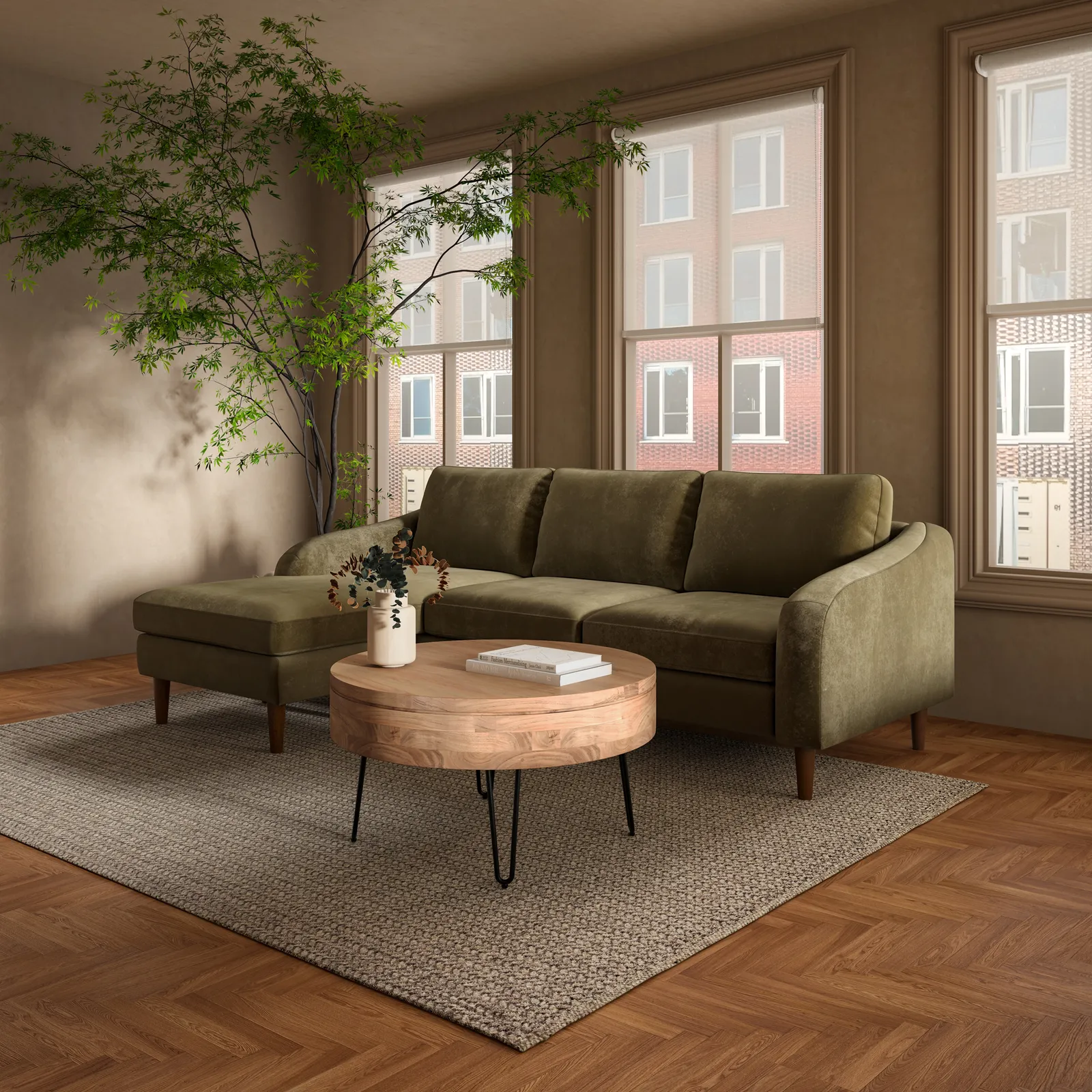 Featuring a reversible chaise ottoman, the Quinn 98in sectional adapts effortlessly to any living space by offering a left or right-side facing orientation. With solid rubberwood legs, it stands on a foundation of durability and sustainable charm. The classic, transitional frame is designed for versatility, harmoniously fitting into a variety of spaces. Wrapped in soft-touch fabrics, it offers an elevated feel, inviting touch, and undeniable comfort with its timeless design and tactile elegance.