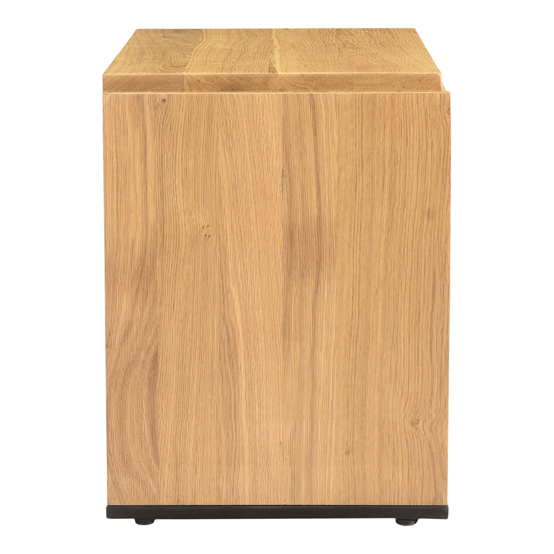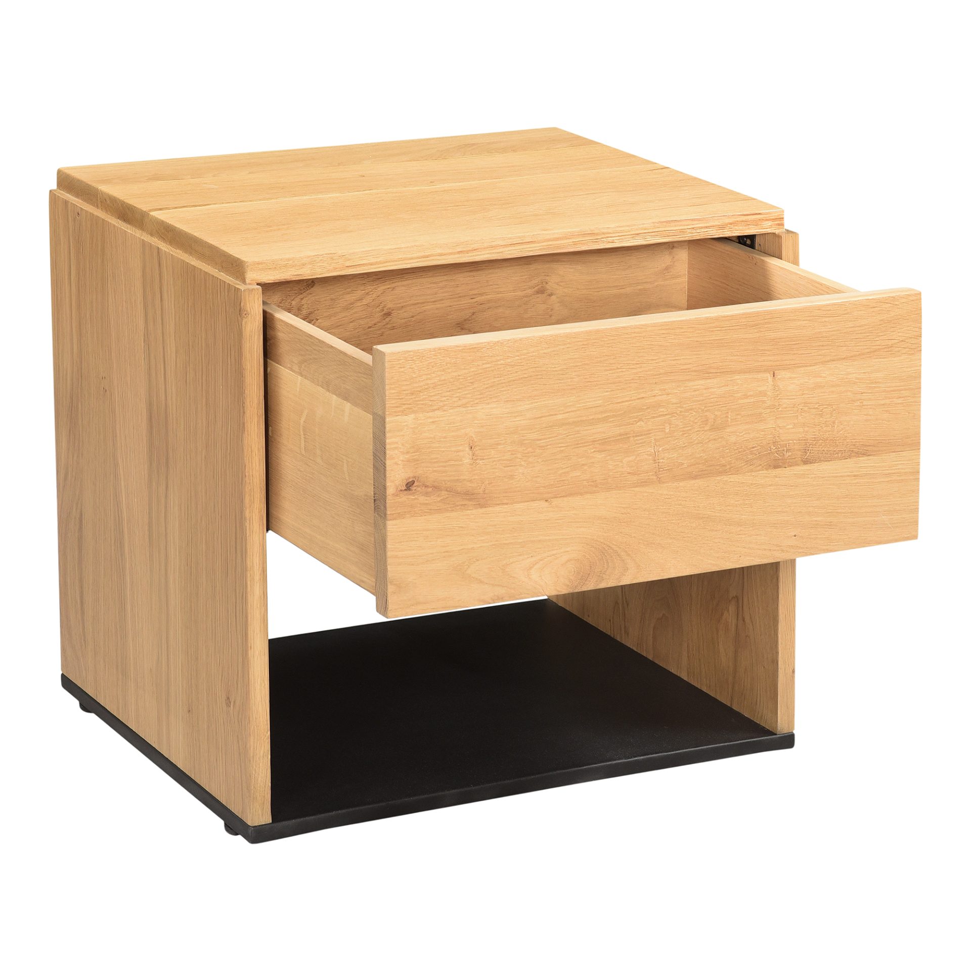 A beautiful contrast of natural oak wood against a sleek iron sheet base, the Quinton nightstand is a natural storage solution at home in any décor. This solid oak bedside table is fitted with a single spacious drawer and clean lines for a seamless, contemporary finish. A handy storage essential, try mix and matching with the different sizes and colors available for the perfect bedroom collection.