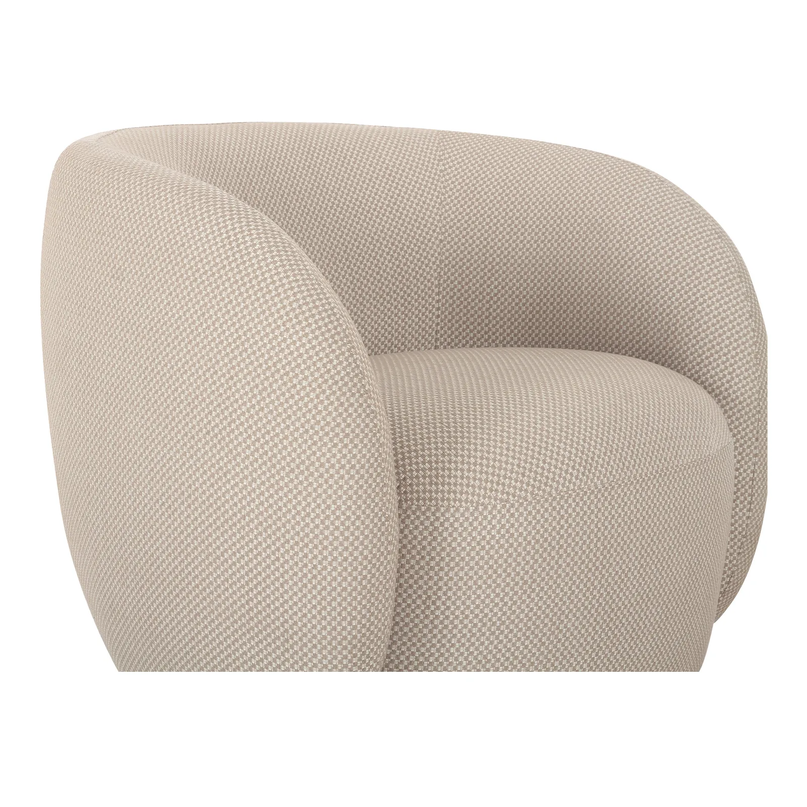 The Rae accent chair’s rounded silhouette and gently curved back match style with comfort. Fully upholstered in an all-weather, water-resistant fabric, it ensures durability without compromising aesthetic appeal, embracing the outdoors with indoor refinement.