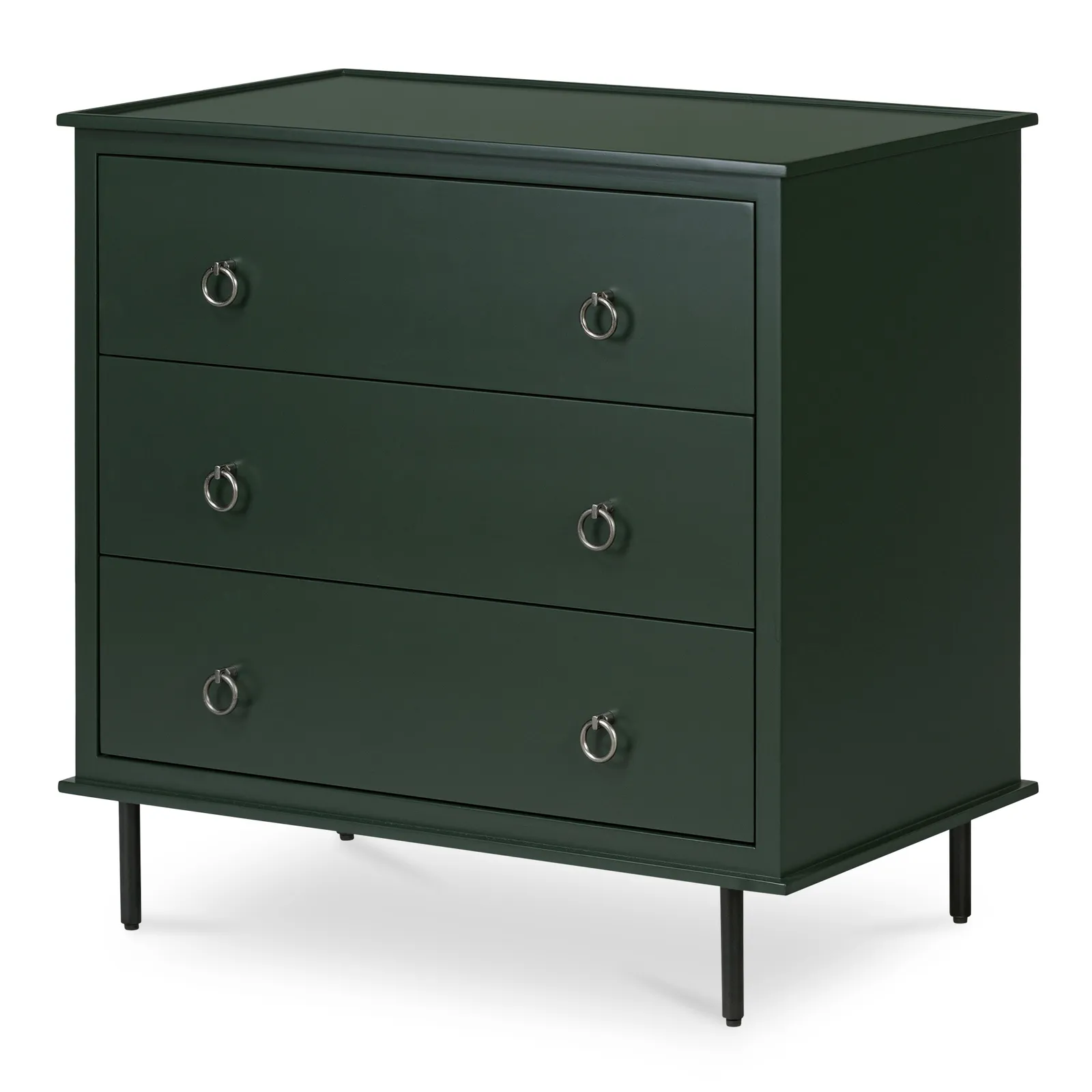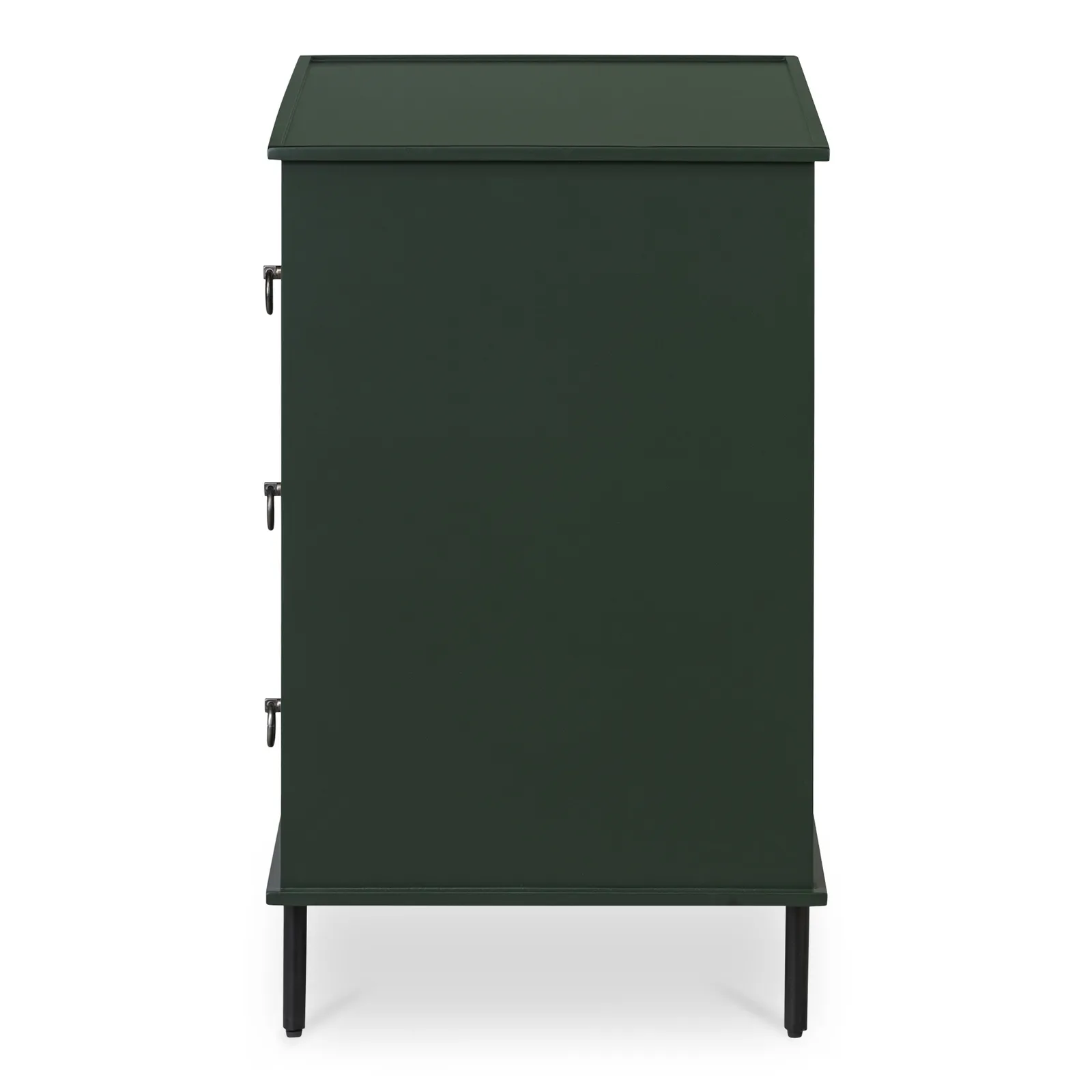 The Reagan 3-drawer nightstand harmonizes the old with the new, featuring a clean, box-like form highlighting the embellished knock-style handles. The frame exudes a sleek, uncluttered feel, while the metal knock handle and legs infuse a touch of traditional elegance. This piece is a testament to the beauty of simplicity, designed to accentuate the intricate craftsmanship of the handles and the thoughtful fusion of materials.
