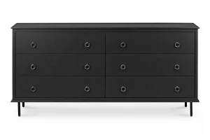 The Reagan 6-drawer dresser harmonizes the old with the new, featuring a clean, box-like form highlighting the embellished knock-style handles. The frame exudes a sleek, uncluttered feel, while the metal knock handle and legs infuse a touch of traditional elegance. This piece is a testament to the beauty of simplicity, designed to accentuate the intricate craftsmanship of the handles and the thoughtful fusion of materials.