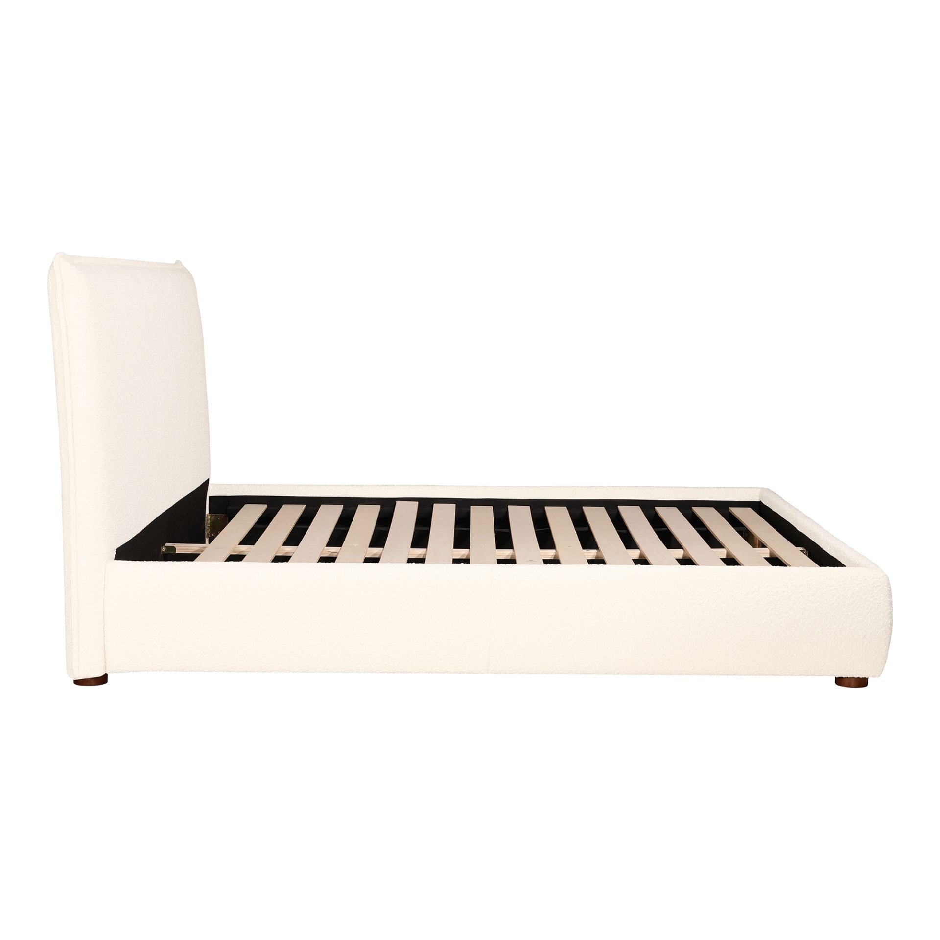 Just like its namesake, the Recharge Queen bed is designed for comfortable, energizing, rejuvenation. A beautiful introduction of creamy boucle to your bedroom living space, the bed’s softly curved form is a serene style made simple. Poised and tranquil, this bed creates an incredibly soft space for mental calm and relaxation – more than comfort, it’s almost an emotion with its delicate nature, padded sides, and headboard, and subtly exposed dark wood post legs.