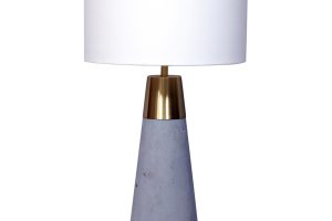The Renny Lamp was designed for a chic home. A classy brass midway balances out its industrial cement base for an innovative look. A clean white lampshade rests confidently on top.