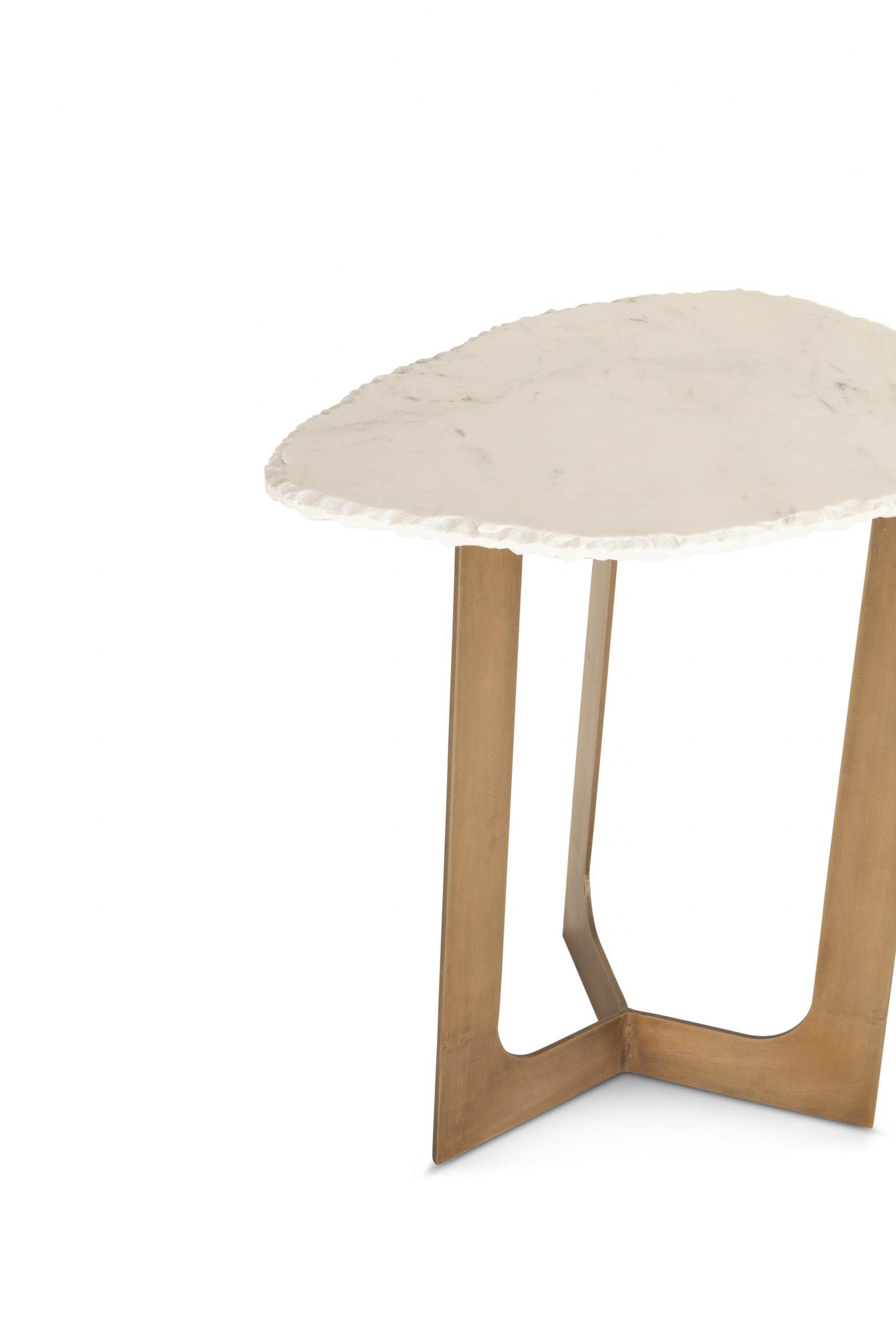 Reno 24″ Side Table in White Marble and Antique Brass Base