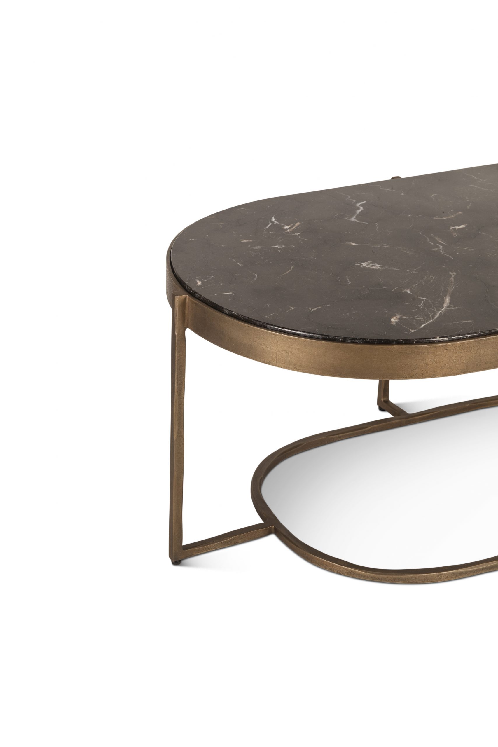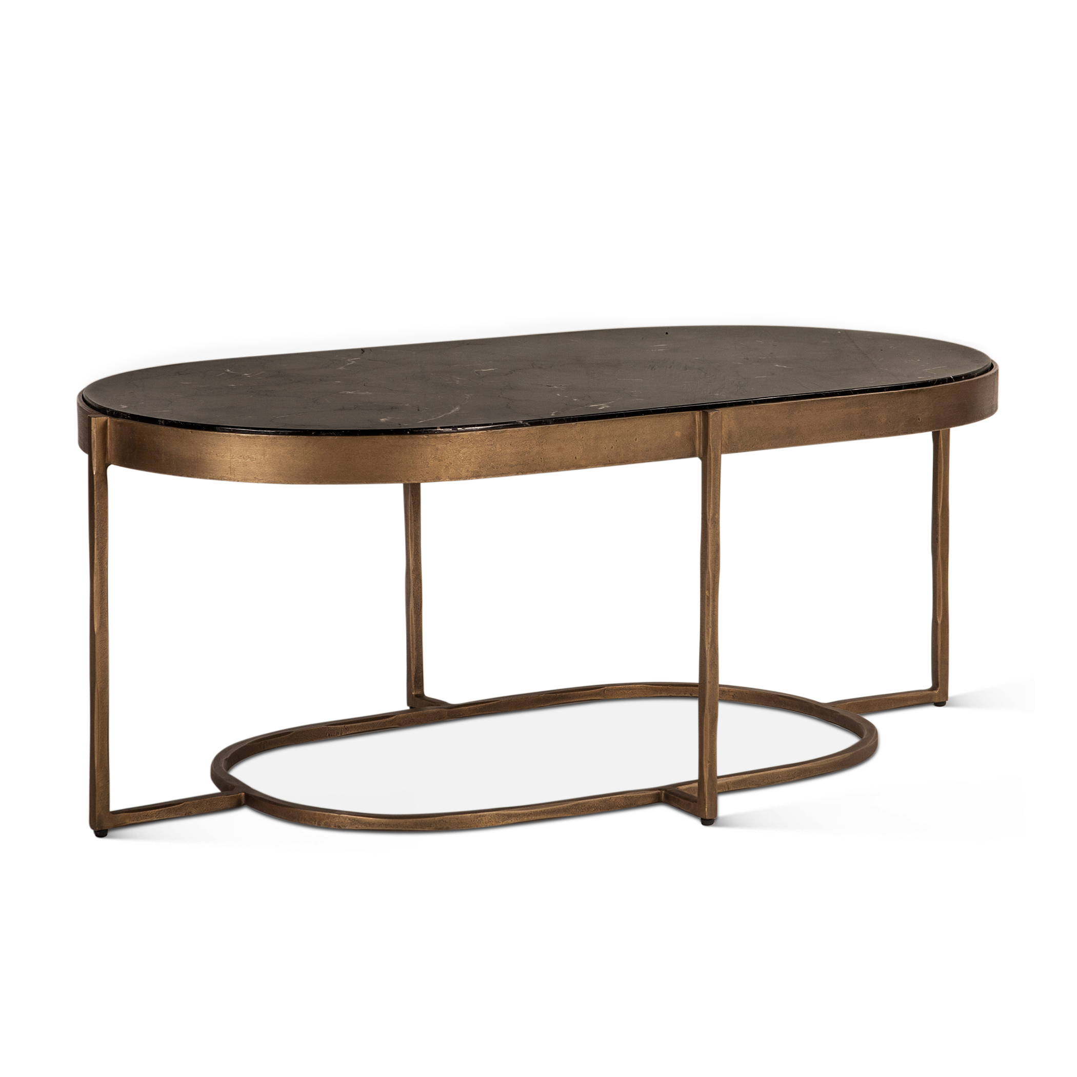 Reno 43″ Coffee Table with Black Marble and Antique Brass Base