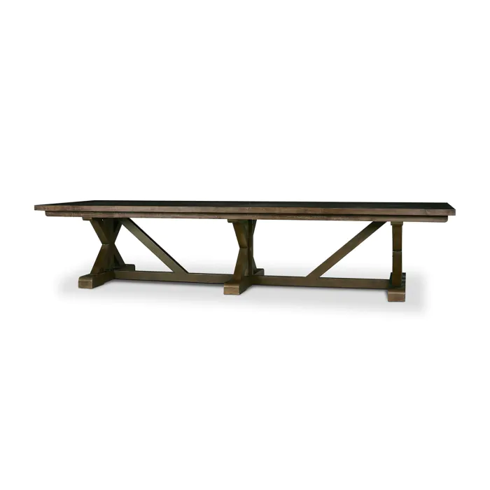 Assembling an urban-industrial room décor is far easier with quality pieces customized to your taste. Built from solid mahogany, the Riverwalk Dining Table offers ample seating space as well as a classic design from a past era. This piece is offered with a vast array of finish and distress options to create a truly custom design.