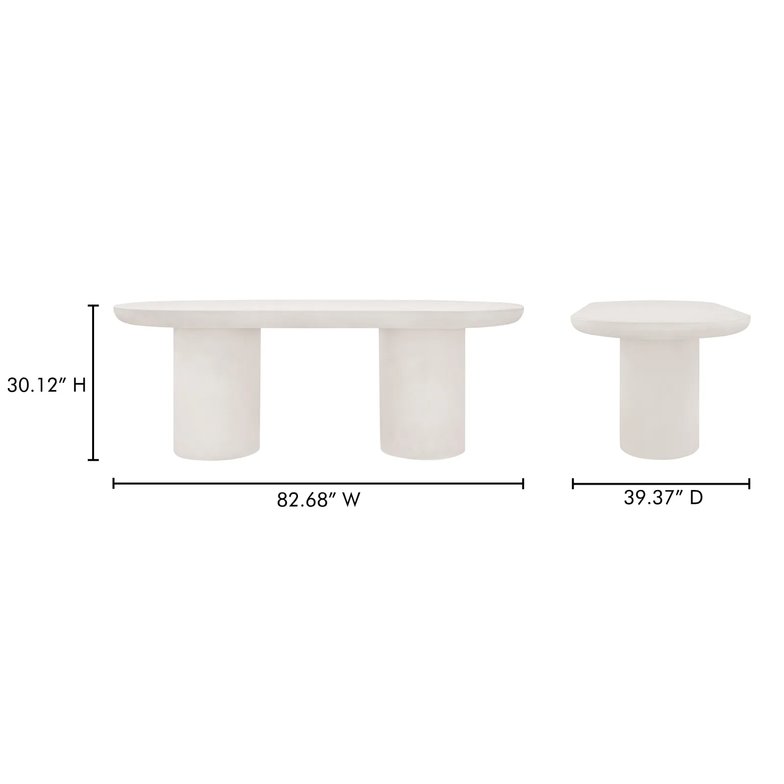 Made from fiber-reinforced natural concrete with a cream finish and set in a sturdy iron frame, the Rocca indoor/outdoor collection’s elemental design places material and forms center stage. Featuring a monolithic contemporary look, this dining table’s supportive pillars and slab seat serve for both drama and comfort. Perfect for pairing with plants and accent pieces, combine this table with other pieces from the Rocca collection for the full effect. Please read through the care instructions below to fully enjoy the beauty of this collection for years to come.