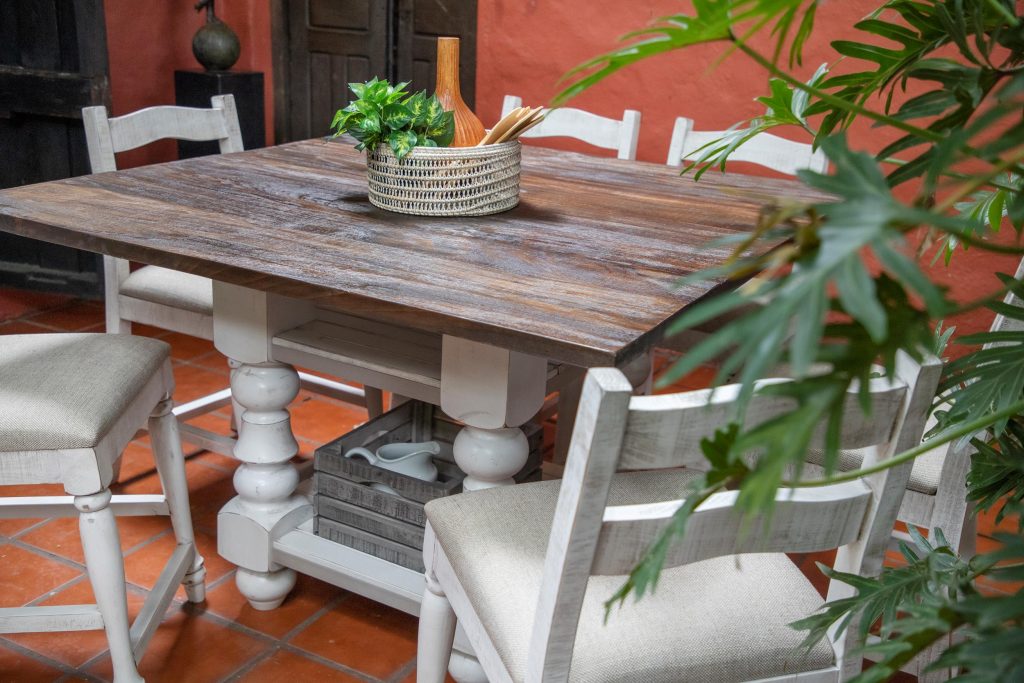 • Lightly distressed wood with a brown multi-step lacquer finish.