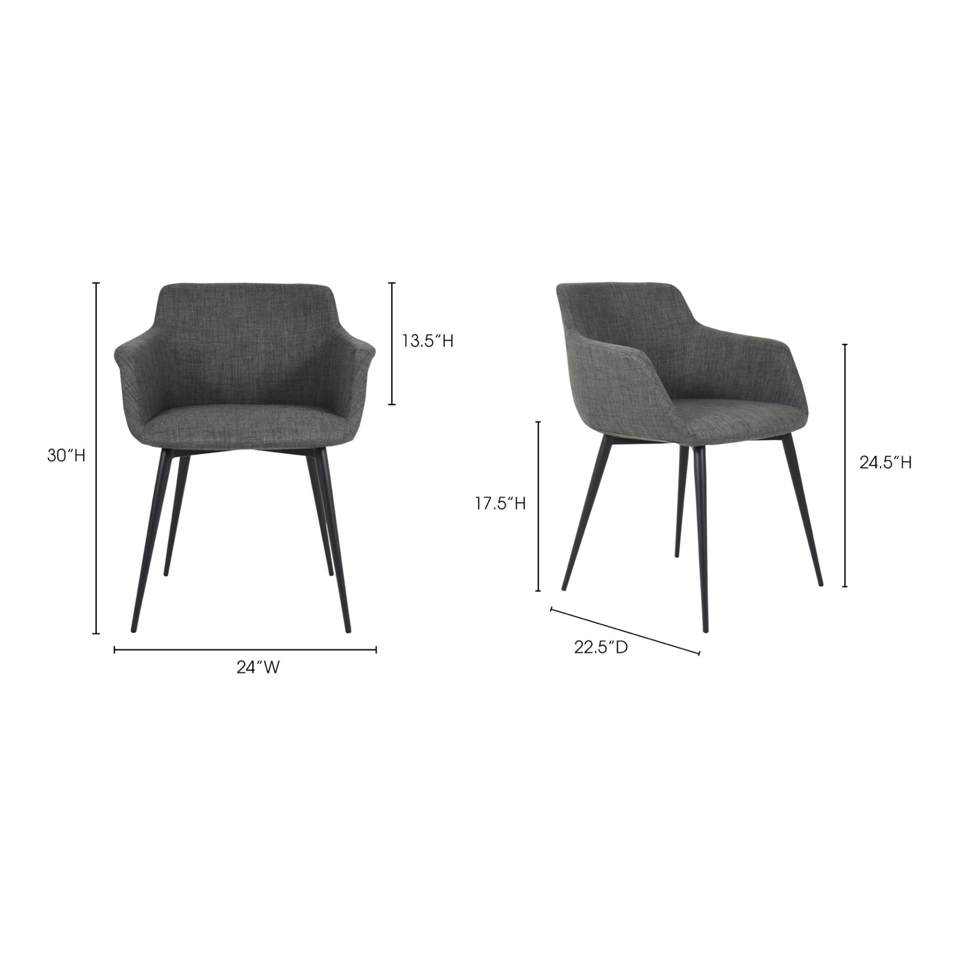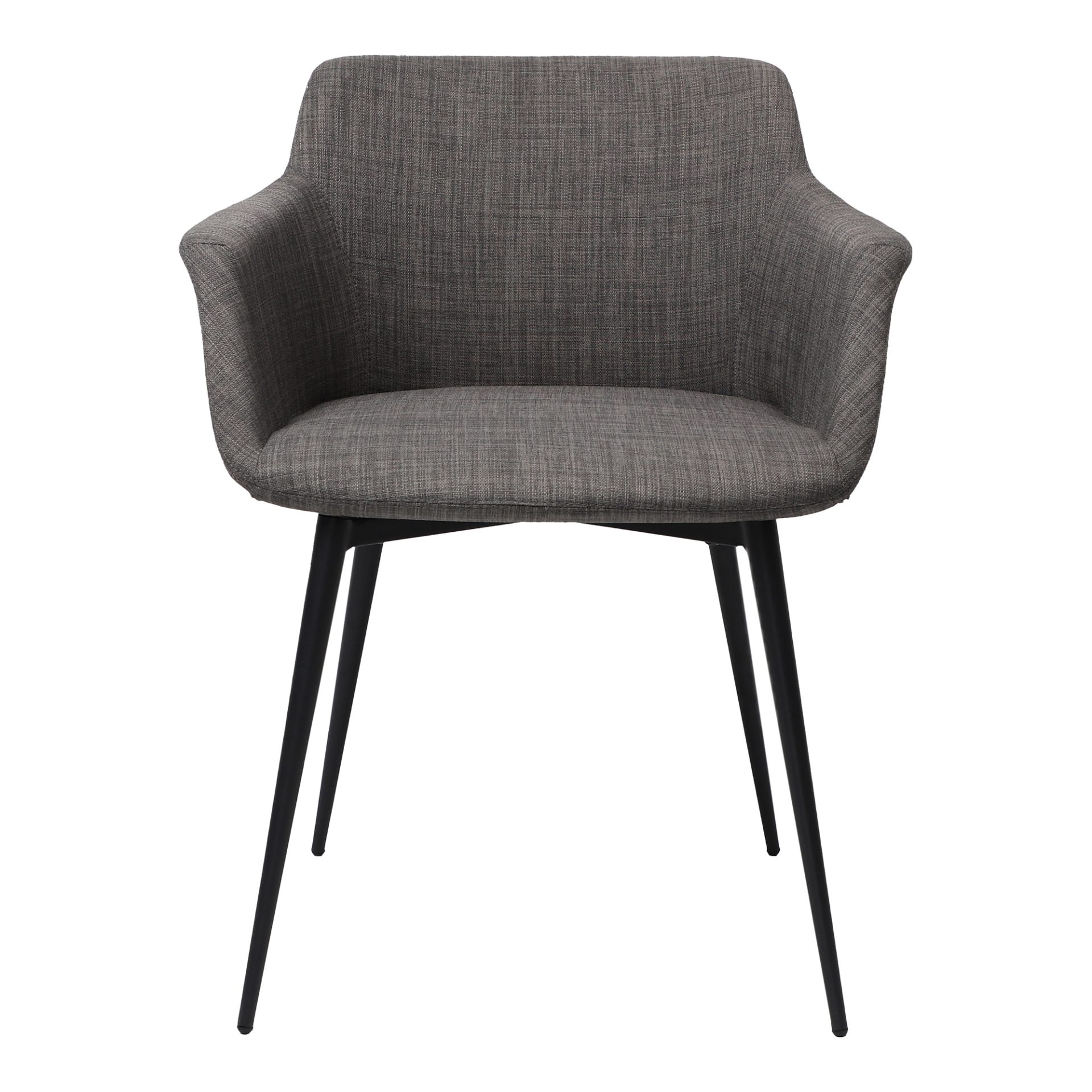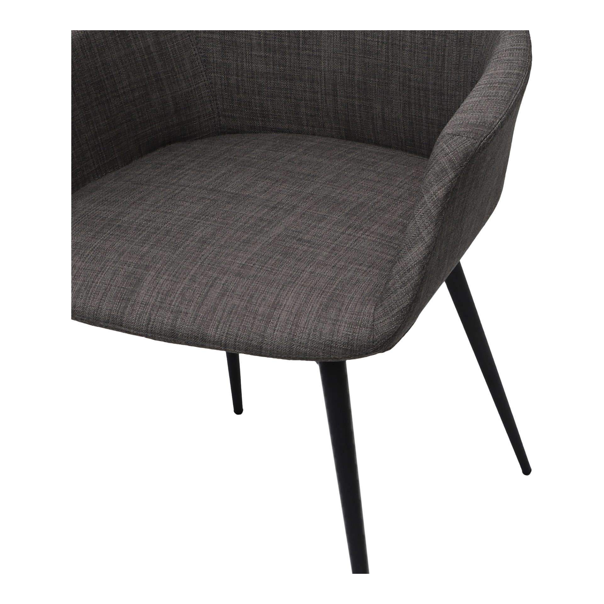 Classic mid-century design, with a modern twist. The Ronda armchair features a uniquely sculpted seat, a comfortable place to dine with foam padding and soft, easy-to-clean polyester upholstery. With its distinct silhouette including steel hairpin legs, this is a distinguished chair for the dining area.