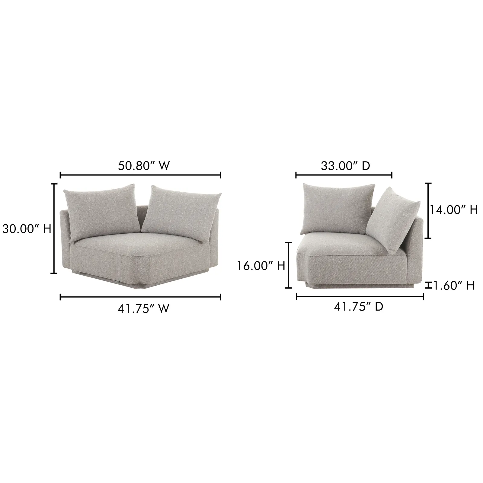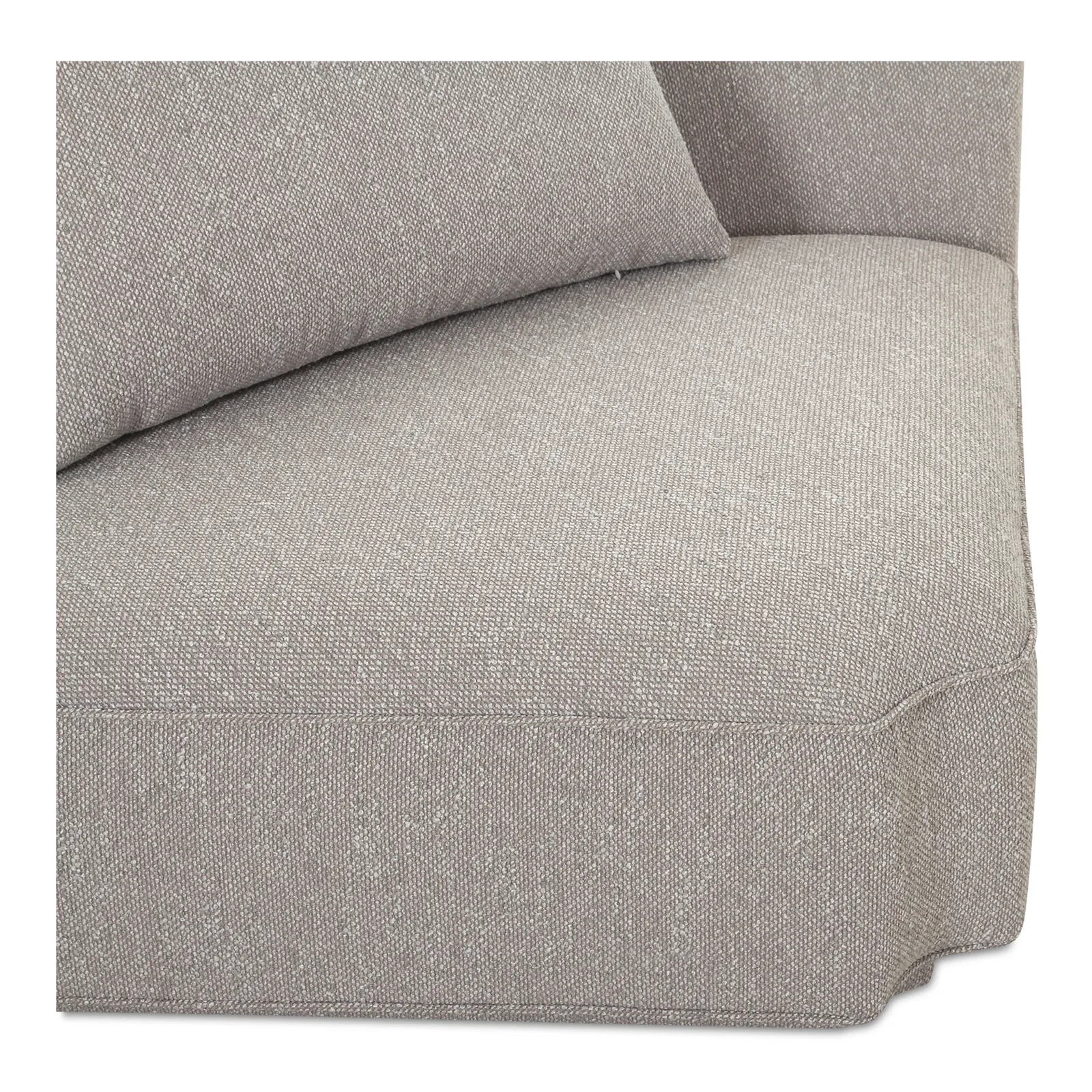 With its clean lines and bolster cushion arms, the Rosello corner chair offers a versatile seating option with its transitional feel. Finished in a highly textured fabric, this piece adds depth and visual interest while ensuring optimal comfort and relaxation.