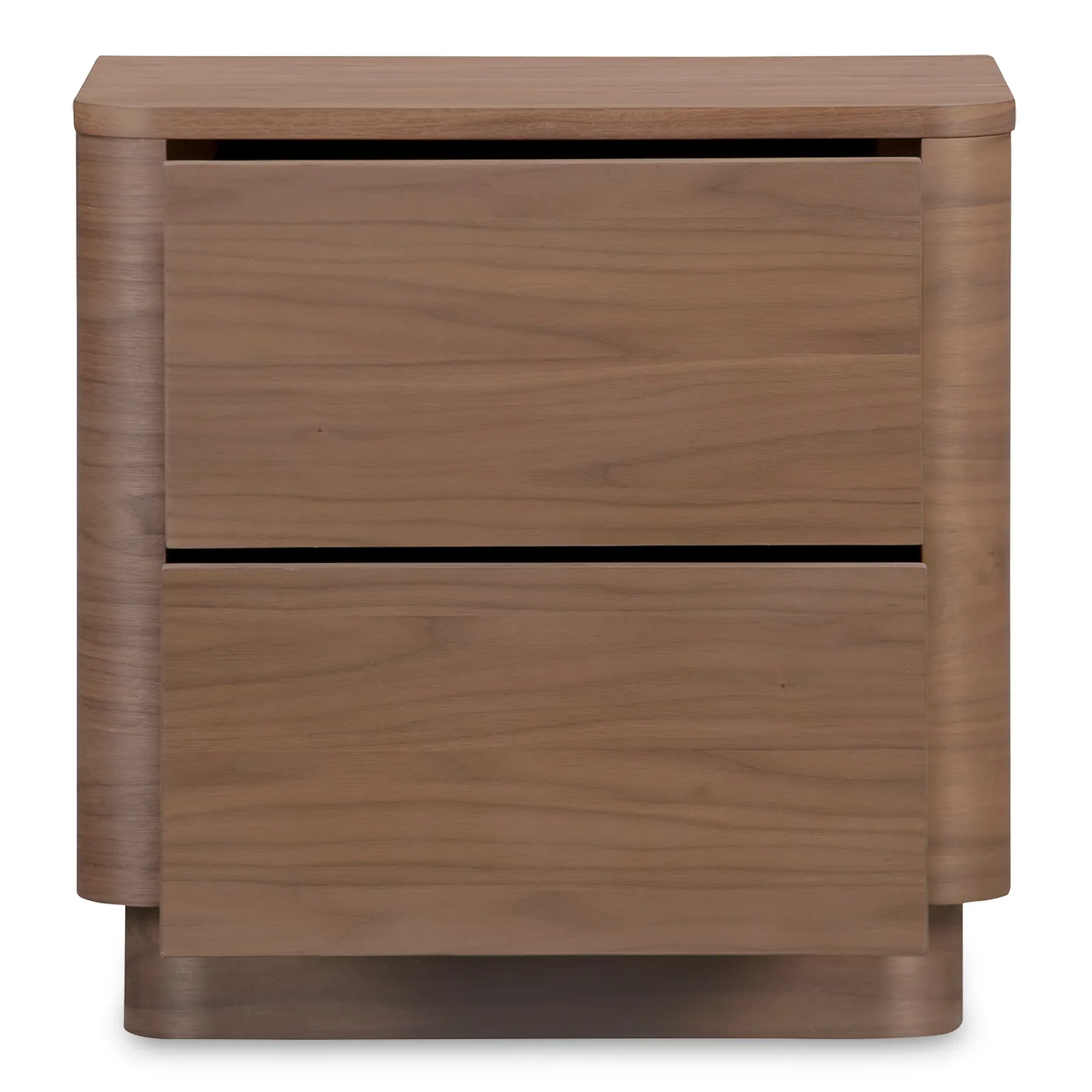 Good nights deserve good design. The Round Off Tall Nightstand pairs softly rounded corners with a warm walnut veneer, bringing a calm and grounded presence to the bedroom. Rich wood grain detail adds natural depth, while a solid rubber wood base ensures lasting stability. Two push-to-open drawers glide smoothly, offering generous space for books, glasses, or nighttime essentials. A balanced blend of form and function, it’s where natural warmth meets everyday routine.