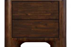 A delightful fusion of playful charm and elegance, the Rowan nightstand draws inspiration from the whimsical days of childhood with its robust, chunky legs, reminiscent of a time when life’s simplest pleasures brought immense joy. Crafted from Acacia wood with a rich walnut stain and two drawers that open with soft-close metal glides, this table balances the carefree spirit of youth and the polished sophistication of adulthood.