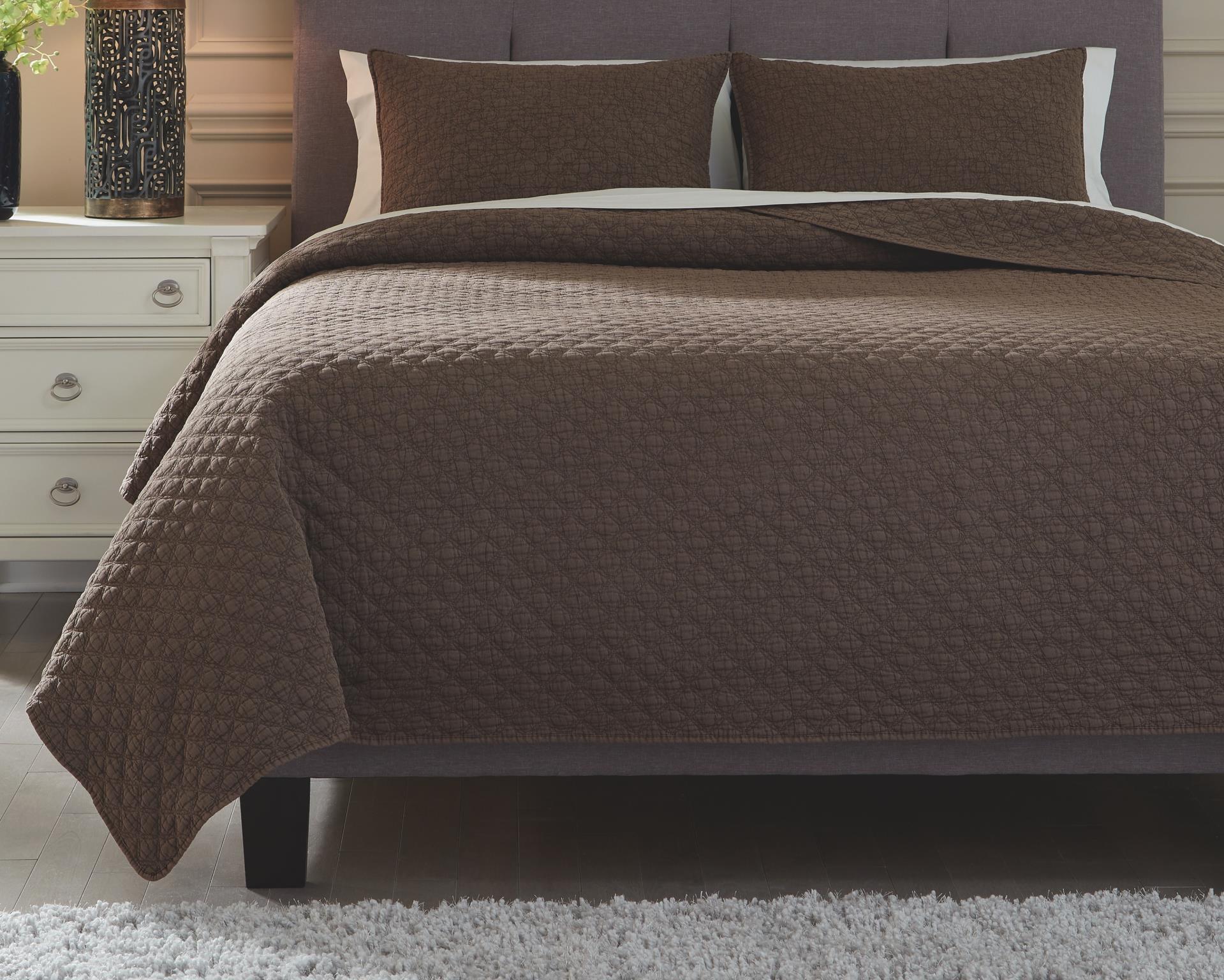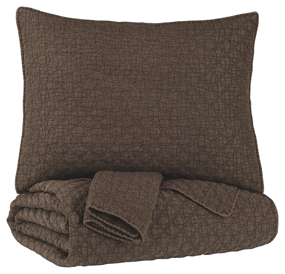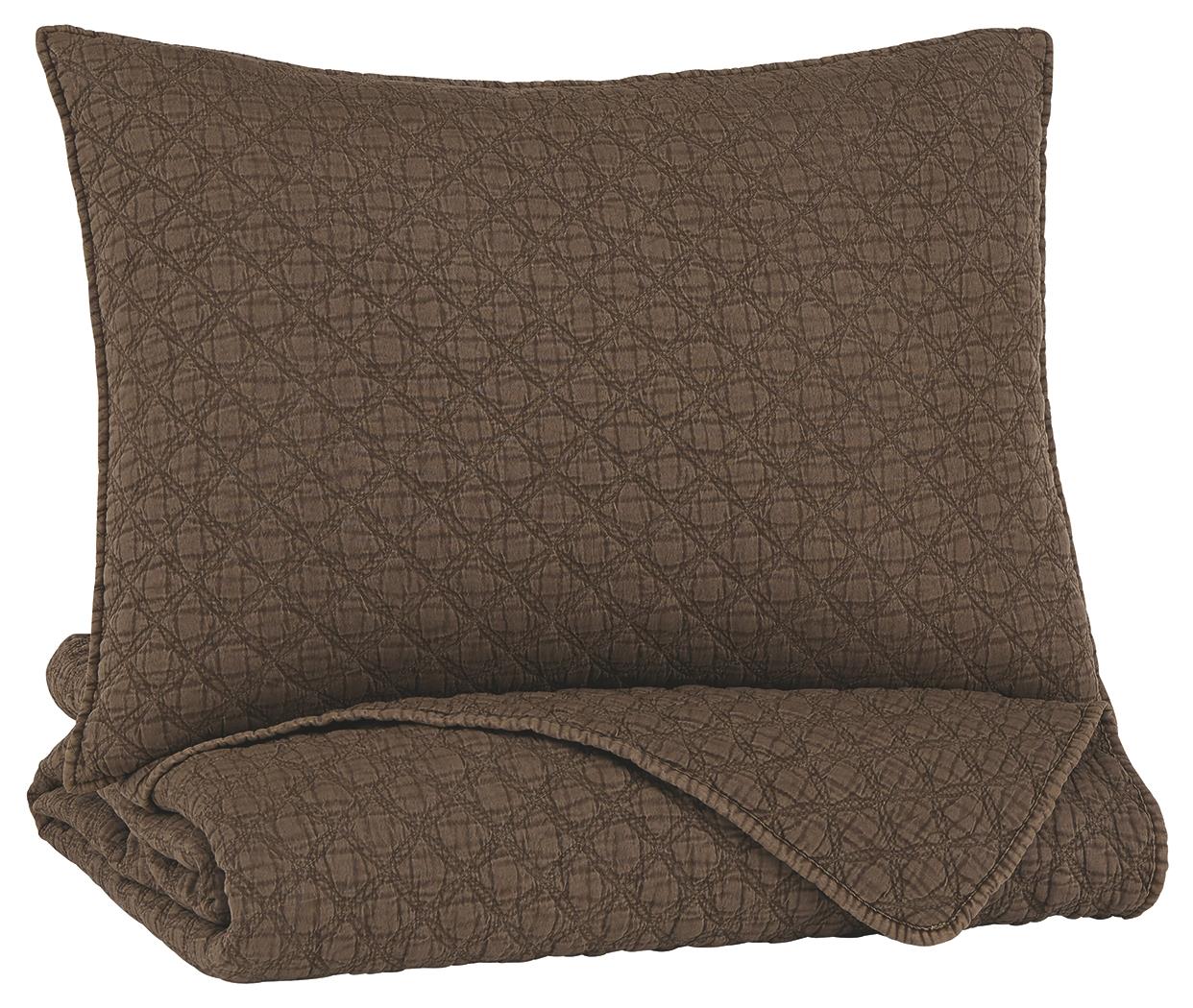 Relax and recharge with this coverlet set. It’s quilted diamond design in brown stonewash is a look that complements just about any decor style. Touting casual-cool flair and a soft feel,,,, jumping into bed is sure to be your favorite part of each night.