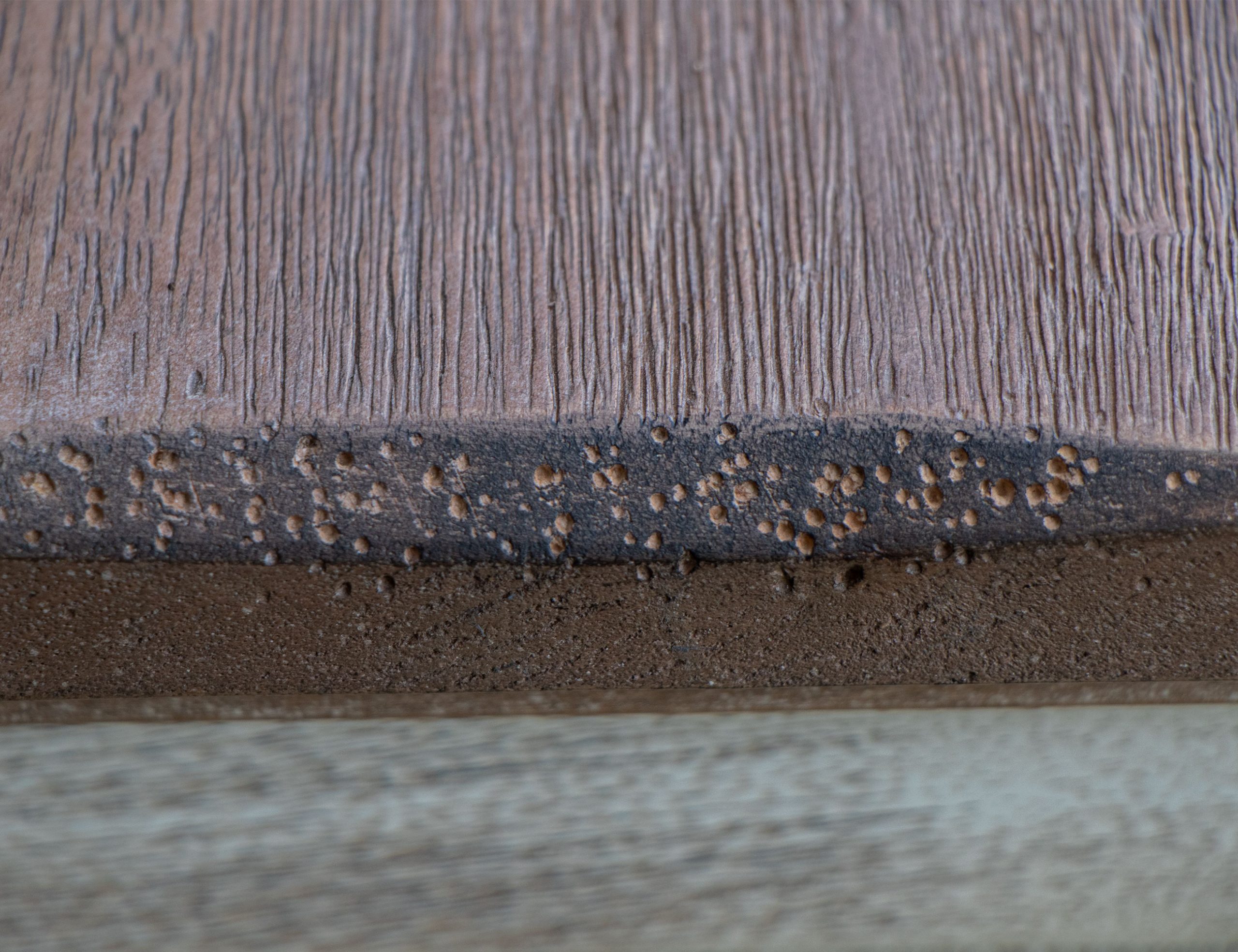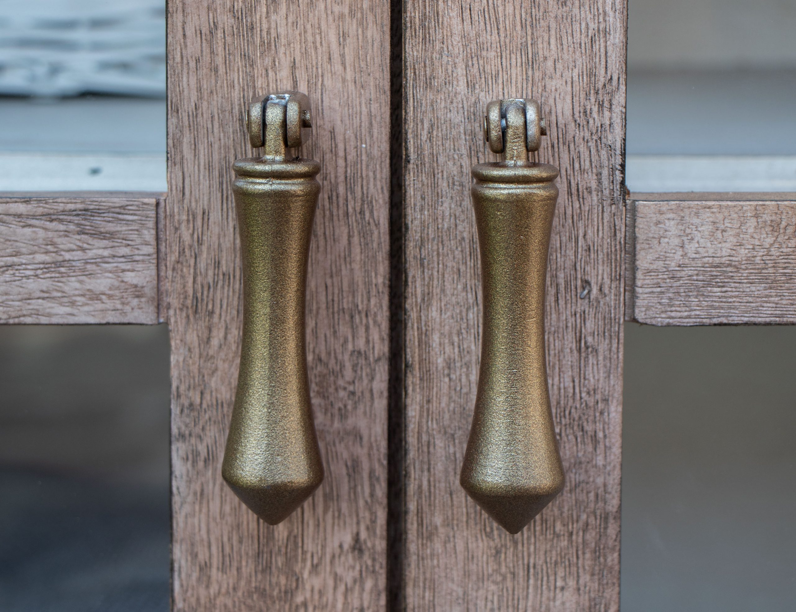 • Multi-step lacquer finish in a cream tone on the case and caramel brown on the tops. Additionally, the wood is wire-brushed and features a wormhole effect.