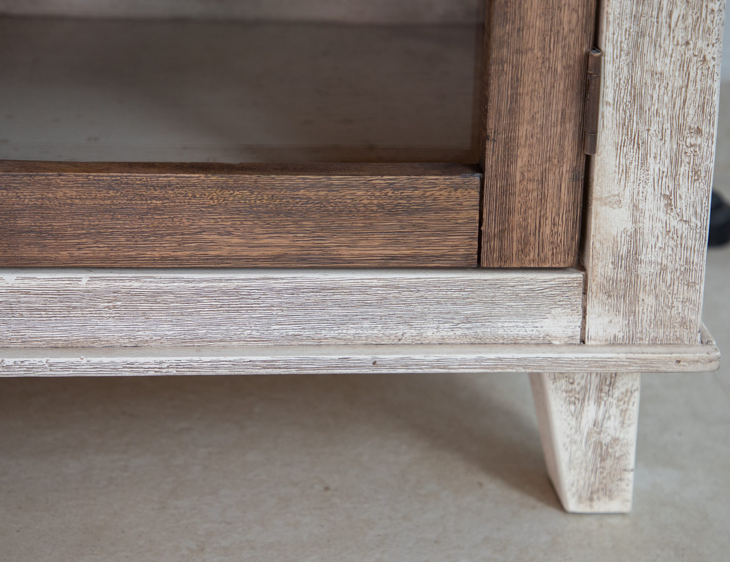 • Multi-step lacquer finish in a cream tone on the case and caramel brown on the tops. Additionally, the wood is wire-brushed and features a wormhole effect.