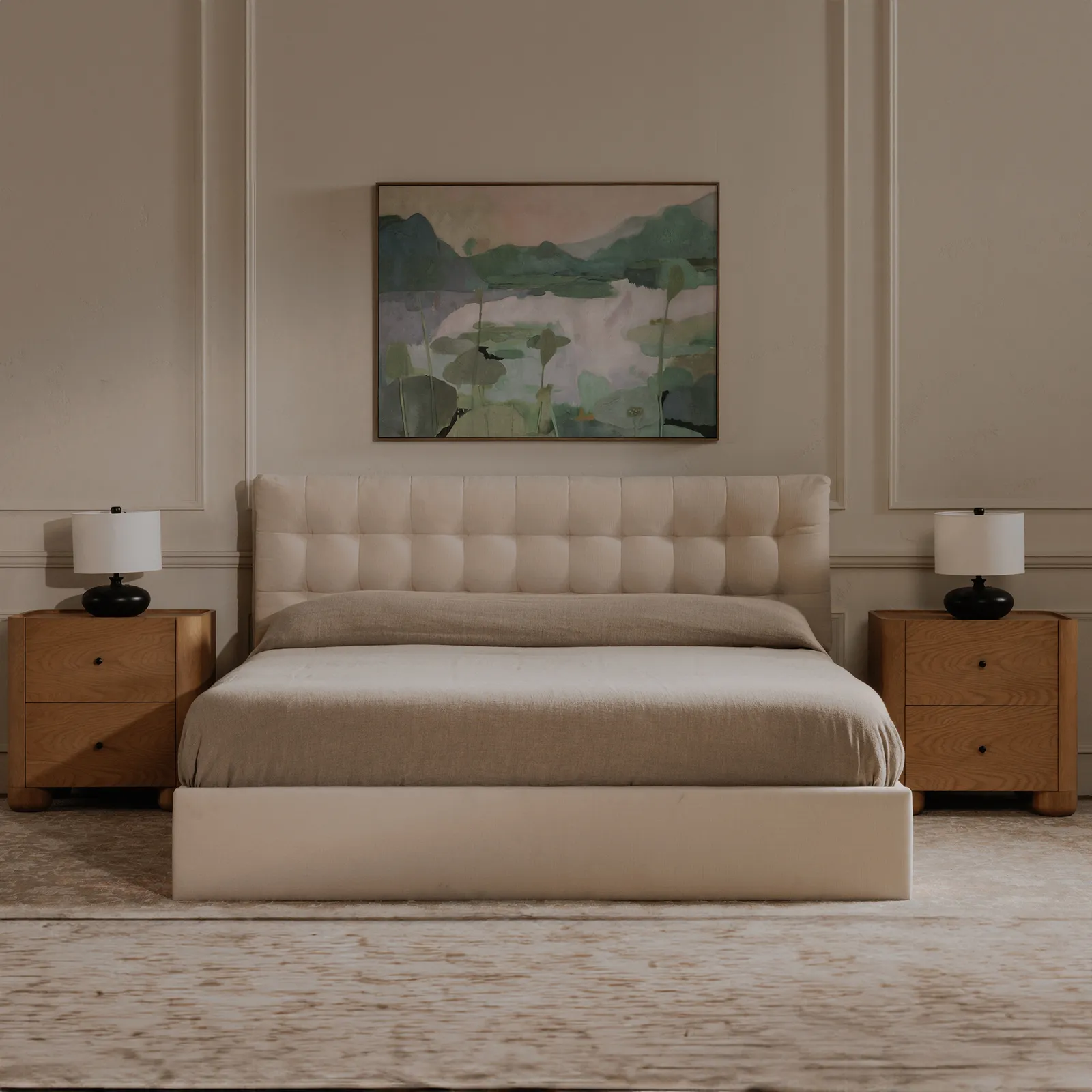 The Saison framed painting captures a serene landscape, offering quiet reflection in the living space. Soft pastel hues depict dreamy lilypads and water lilies, transitioning into an abstract backdrop. Masterfully crafted with acrylic on canvas and framed in solid pine, this artwork seamlessly blends contemporary style with timeless motifs