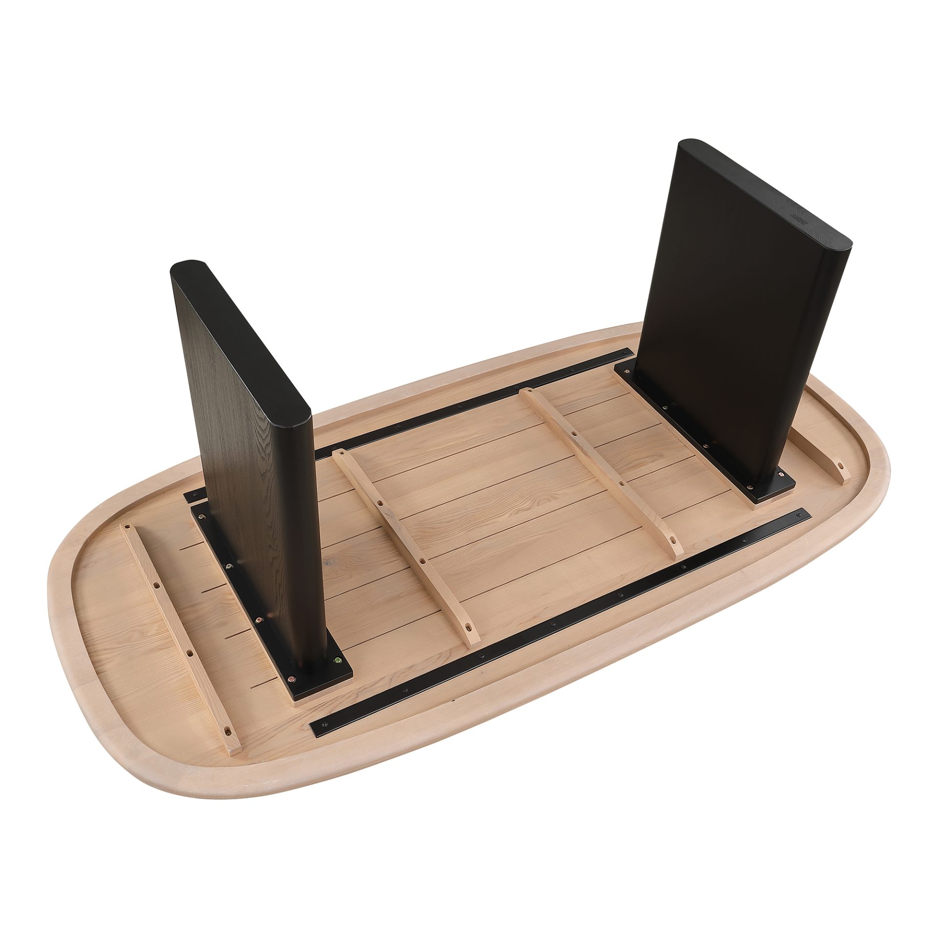 Trying to modernize your dining room becomes seamless with the Sakurai dining table. This piece of dining room furniture is made from solid Ash wood. The naturally finished table-top contrasts against the black base for a bold look. The two legs on the Sakurai dining table go from end to end, showing off a unique contemporary design.