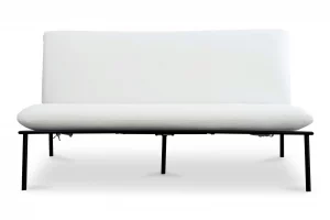 The Salma outdoor sofa’s armless design includes quick-dry foam cushions covered in 100% Olefin fabric that resists fading and includes ties for stability. It features a durable stainless-steel frame with elegant crisscross detailing. This piece combines superior comfort with exceptional weather resilience, making it perfect for outdoor use.