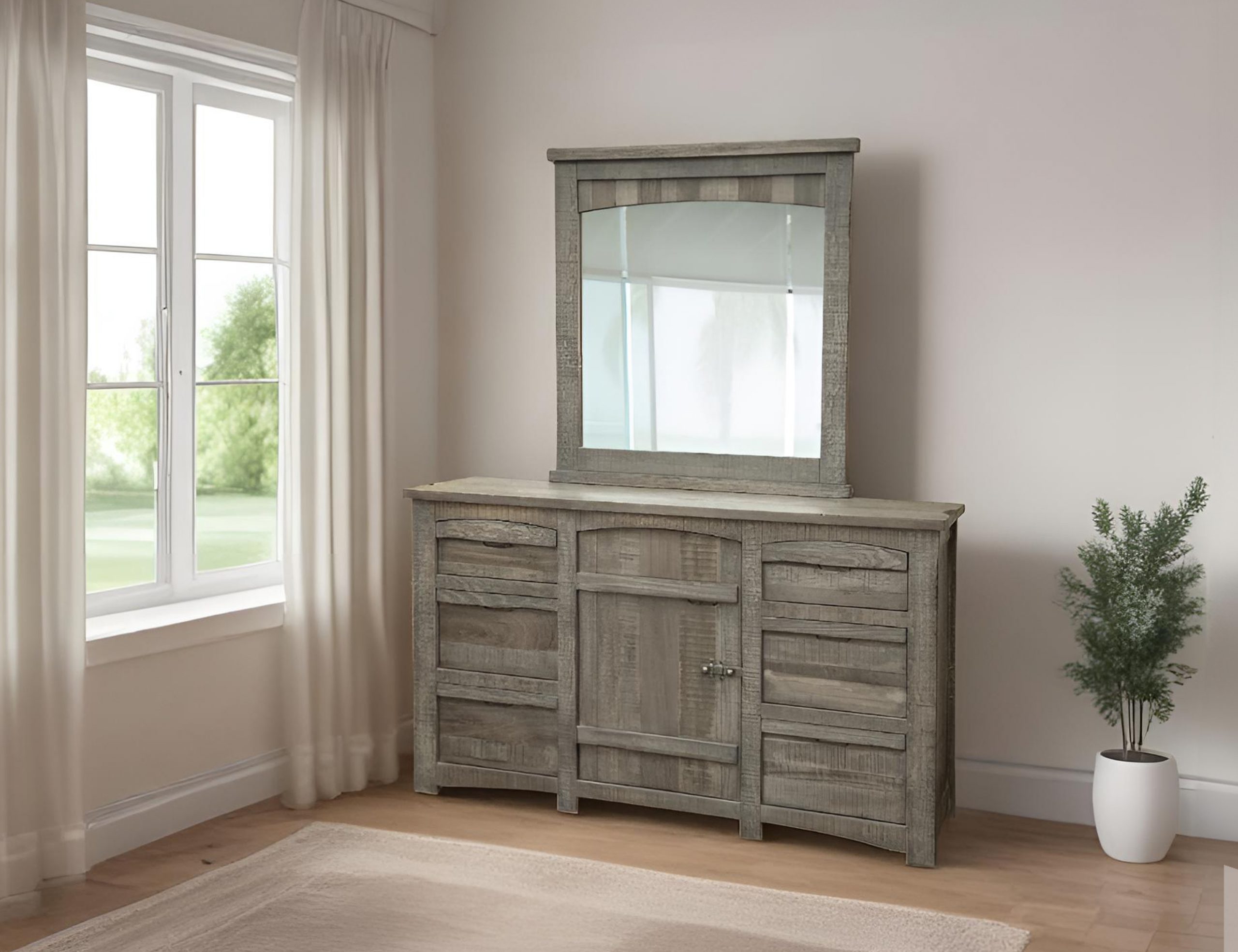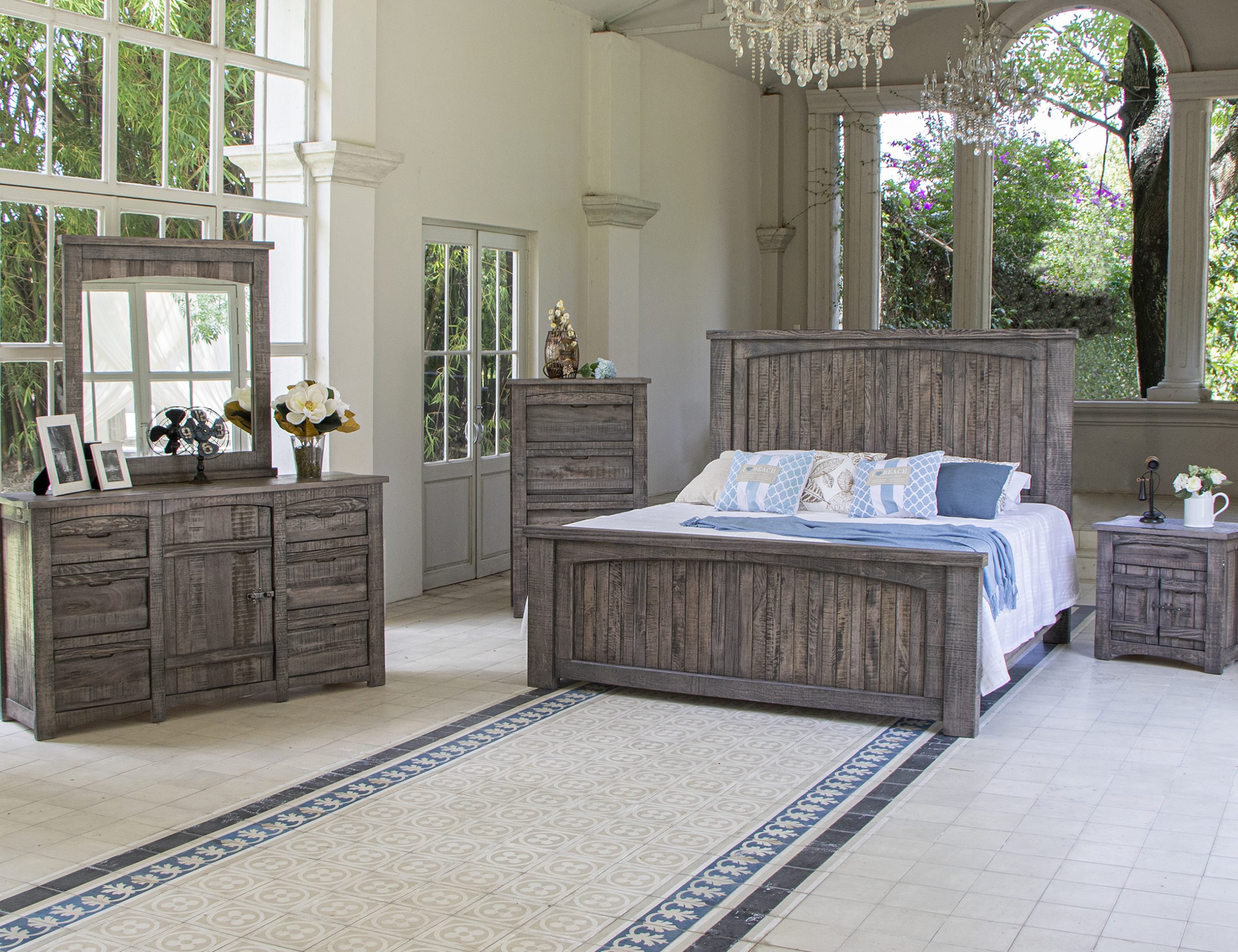 • The San Antonio collection embodies timeless rustic charm, meticulously crafted from pine and mango wood to offer high-quality pieces. Finished in subtle gray tones, each piece is hand-brushed to enhance the natural wood grain, imparting an additional layer of rustic allure.