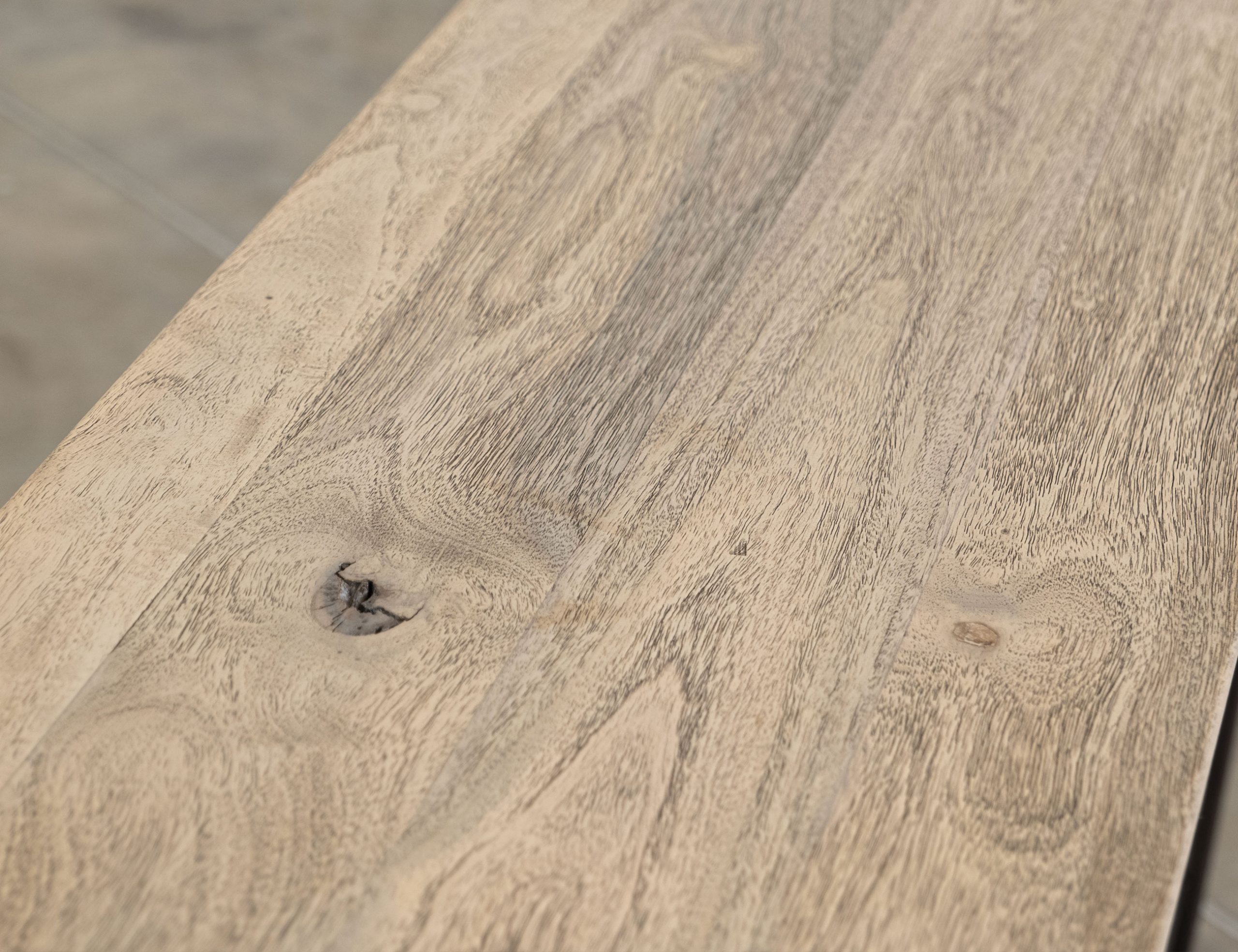 • Lightly distressed wood with an ivory multi-step lacquer finish.