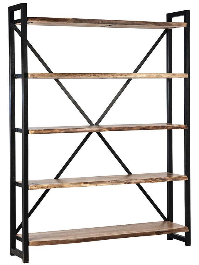 Santos Bookcase Live Edge Acacia Wood and Iron Natural Wood Finish with Black Metal Frame India
