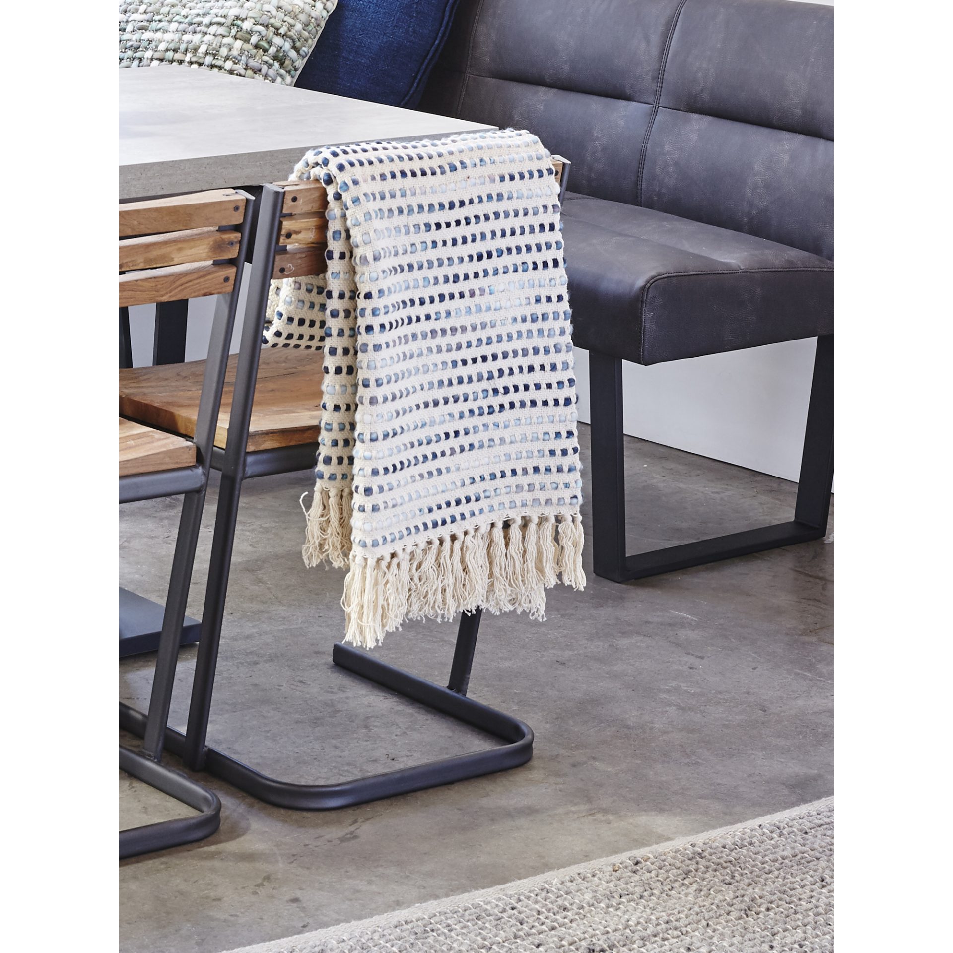 A classic throw made of a blended fabric that provides softness and comfort. Easy to care for cotton and viscose. The perfect oatmeal blend has blue woven throughout for a splash of soothing color.