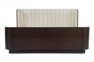 - Dark birch veneer over MDF frame with rubberwood base. Foam & fiber headboard