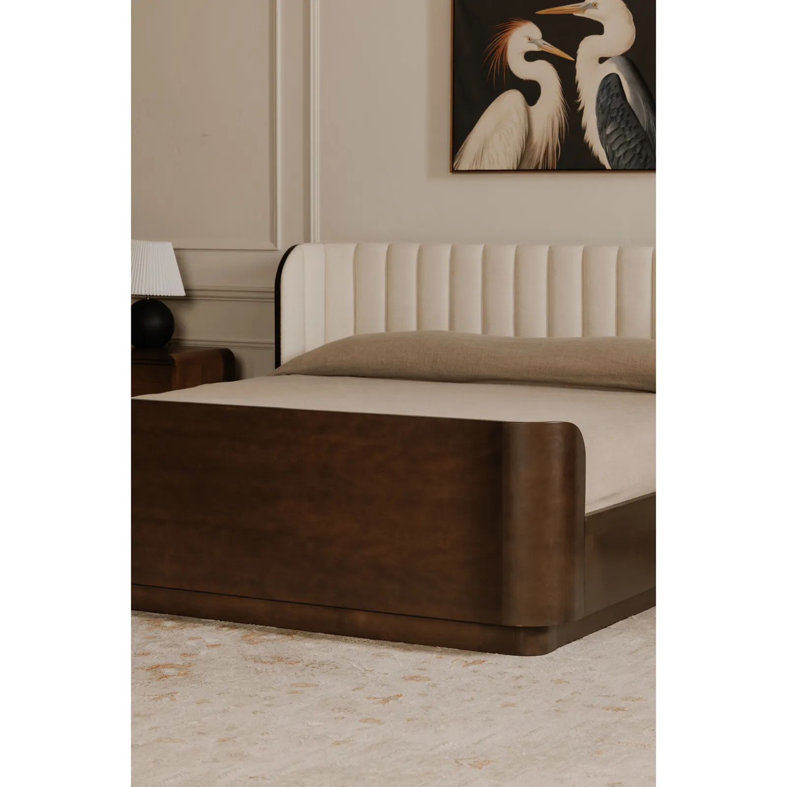 The Scarlette bed’s classic sleigh design features soft polyester upholstery and a dark birch veneer over MDF frame that transforms any bedroom into a cozy retreat. Its foam and fiber headboard curves forward in a cocoon-like shape, offering a warm, enveloping embrace perfect for reading and relaxation.