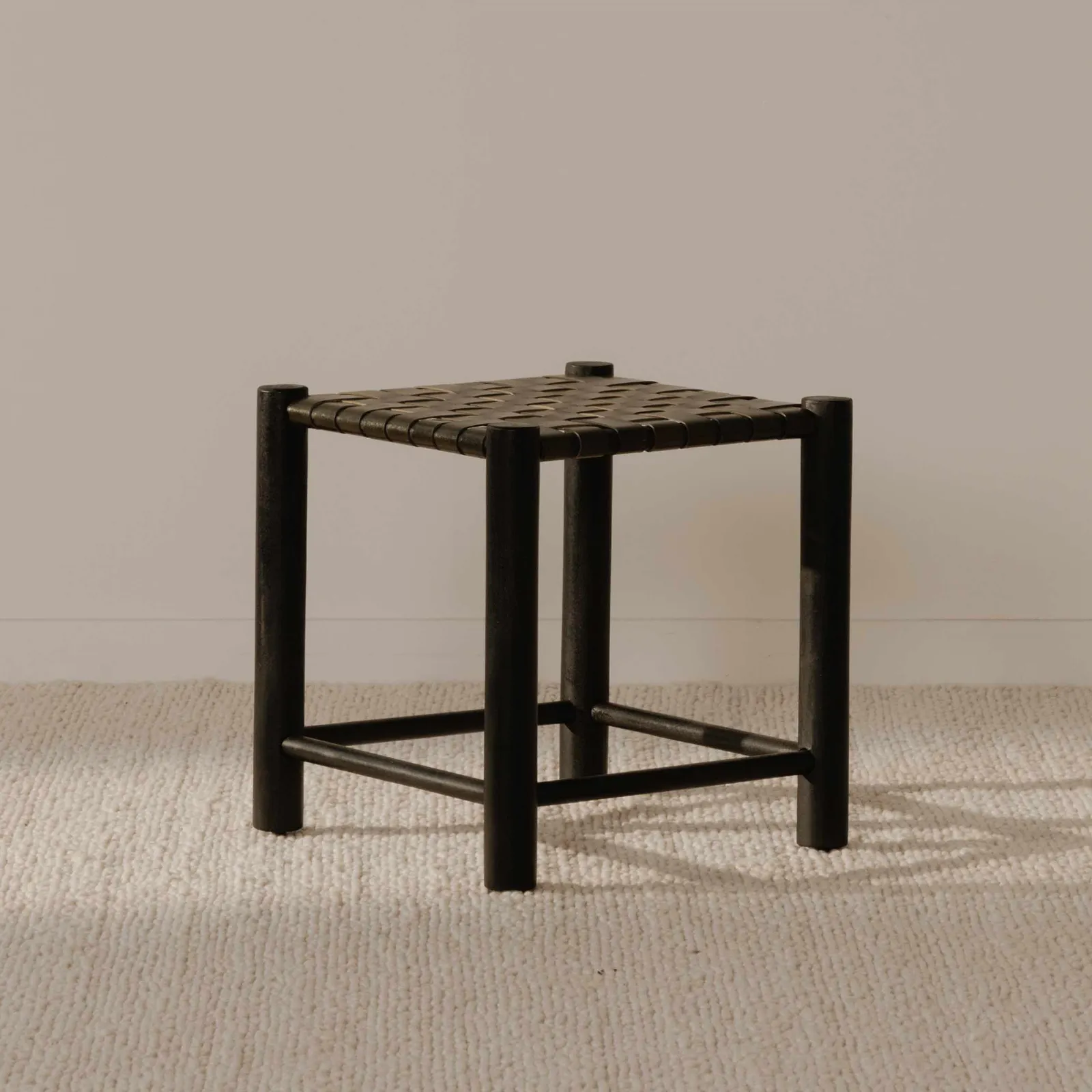 Meticulously fashioned from solid mango wood whose natural grain patterns and earthy tones add a touch of rustic charm and adorned with wide straps of luxurious buffalo leather, the Selby stool gracefully weathers the test of time. Each passing day brings out the true character of the colored leather, as it develops a rich patina through everyday use. This natural aging process adds depth, warmth, and a delightfully time-worn finish, elevating the stool’s allure.