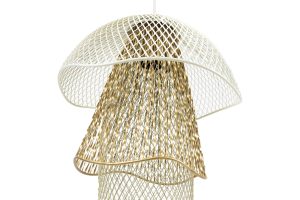 Make a splash with Sella. Featuring an organic, flowing design inspired by jellyfish, the Sella pendant lamp’s layered iron mesh shade offers glam appeal. Each of its three shades provides a different metallic finish, giving this eye-catching lamp an eclectic elegance. Available in two sizes, the Sella and Sonna hanging pendant lamps will float beautifully over your dining table, your bed, or anywhere else you could use a little illumination.