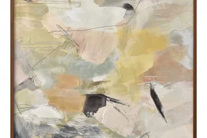 Serendipity blurs soft, muted pastels with more graphic black shades as soft tones add a sense of serenity and tranquility to the abstract piece. The warm brown finish of the solid pine frame highlights the presentation with a vintage feel.