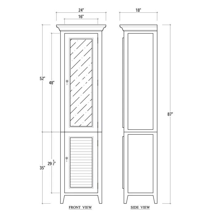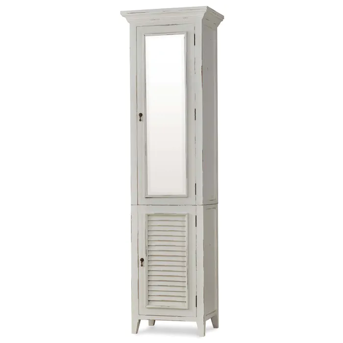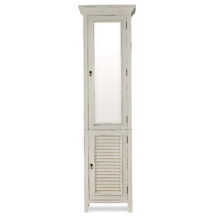 Bring farmhouse charm to any bathroom with the Aries collection Shutter Tall Bath Cabinet with Mirror. Ideal for a spacious bath, this cabinet offers plentiful storage with a louvered panel underneath its mirror, and solid mahogany construction. This piece is offered with a vast array of finish and distress options to create a truly custom design.