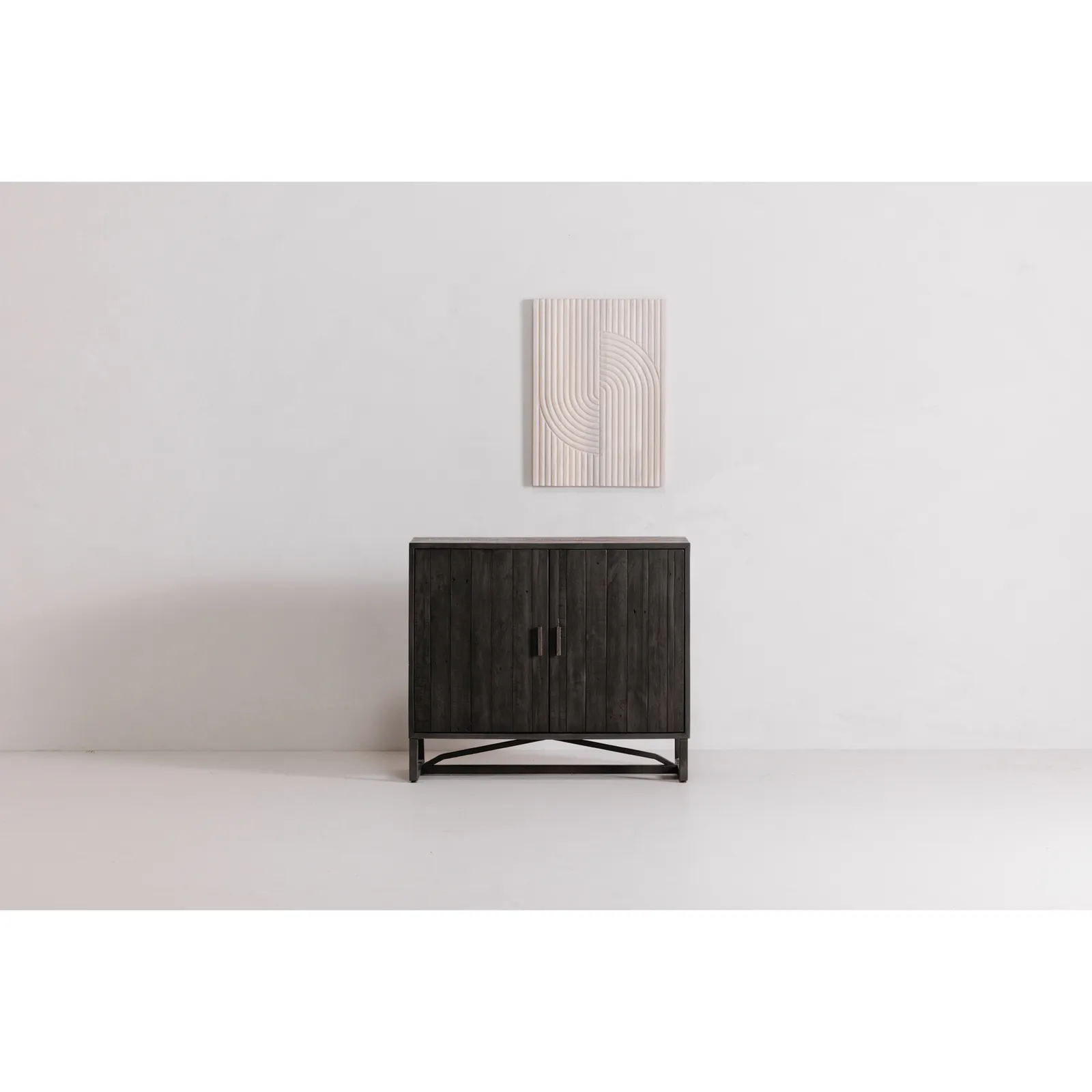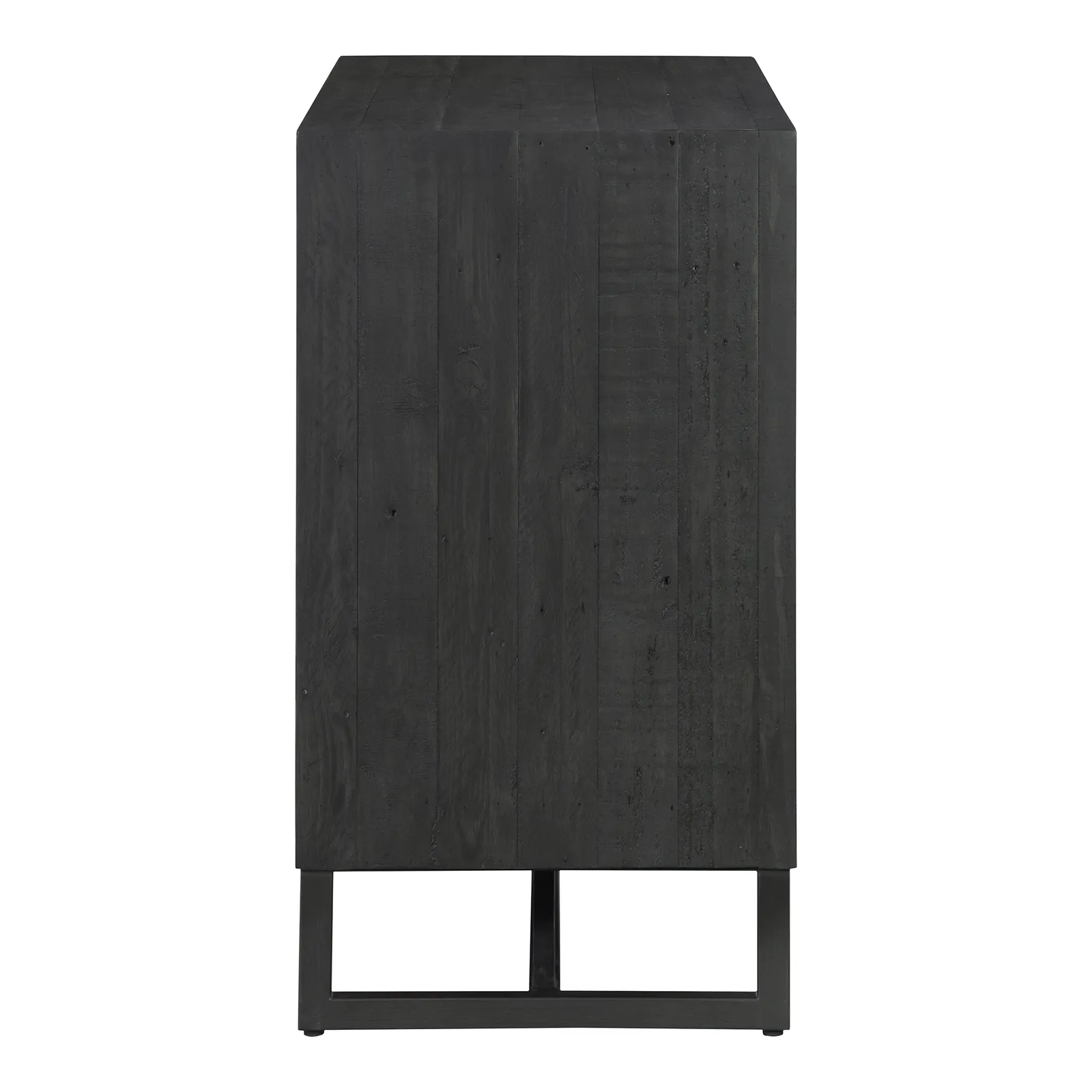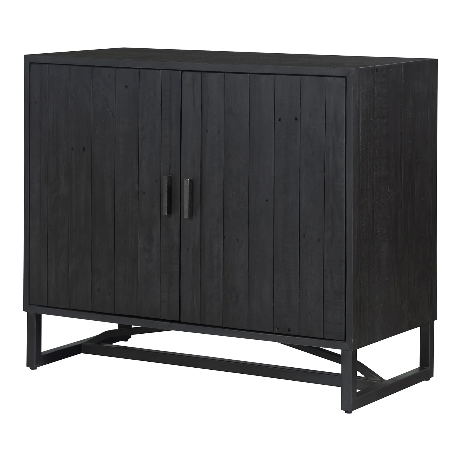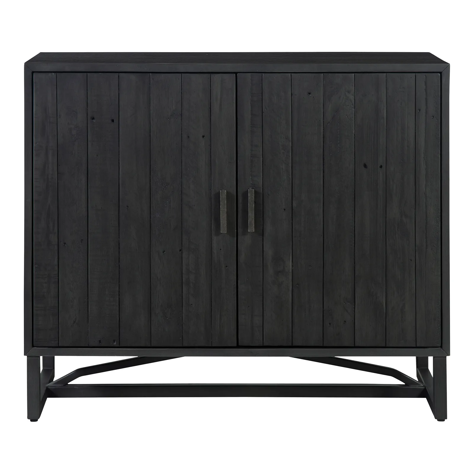 Made with solid reclaimed pine, the Sierra 2 door cabinet exhibits natural woodgrain and knot variances. Its single adjustable pine wood shelf provides ample space while a solid metal base & finished back give this 2 door cabinet its transitional design.