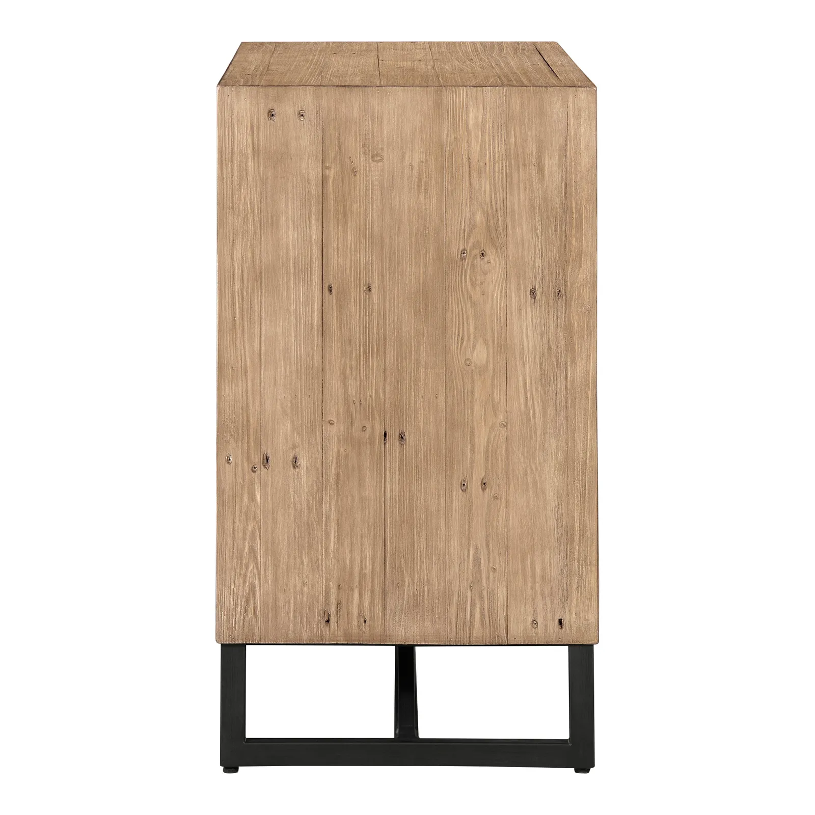 Made with solid reclaimed pine, the Sierra 2 door cabinet exhibits natural woodgrain and knot variances. Its single adjustable pine wood shelf provides ample space while a solid metal base & finished back give this 2 door cabinet its transitional design.