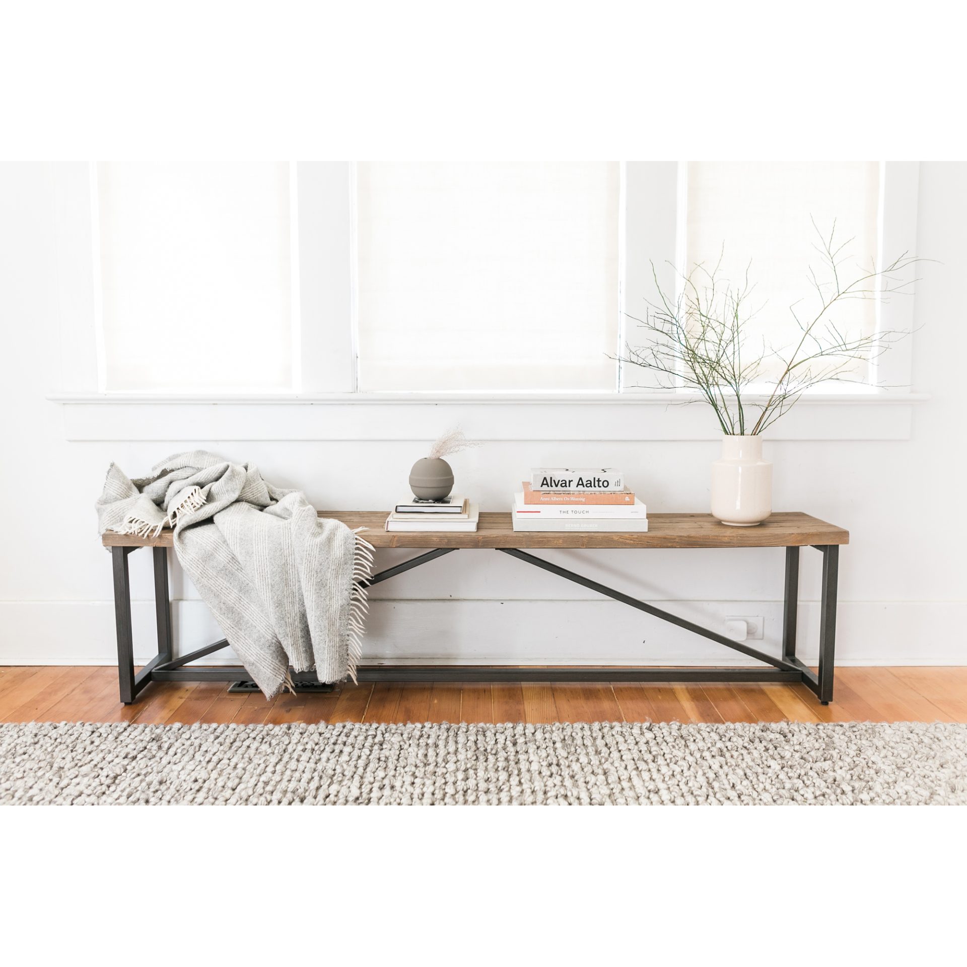 An airy metal base gives the Sierra Bench a sleek industrial look. Finished with a solid reclaimed pine top, this bench features its own unique woodgrain and knot pattern. Pair with the Sierra Dining Table for a seamless look.