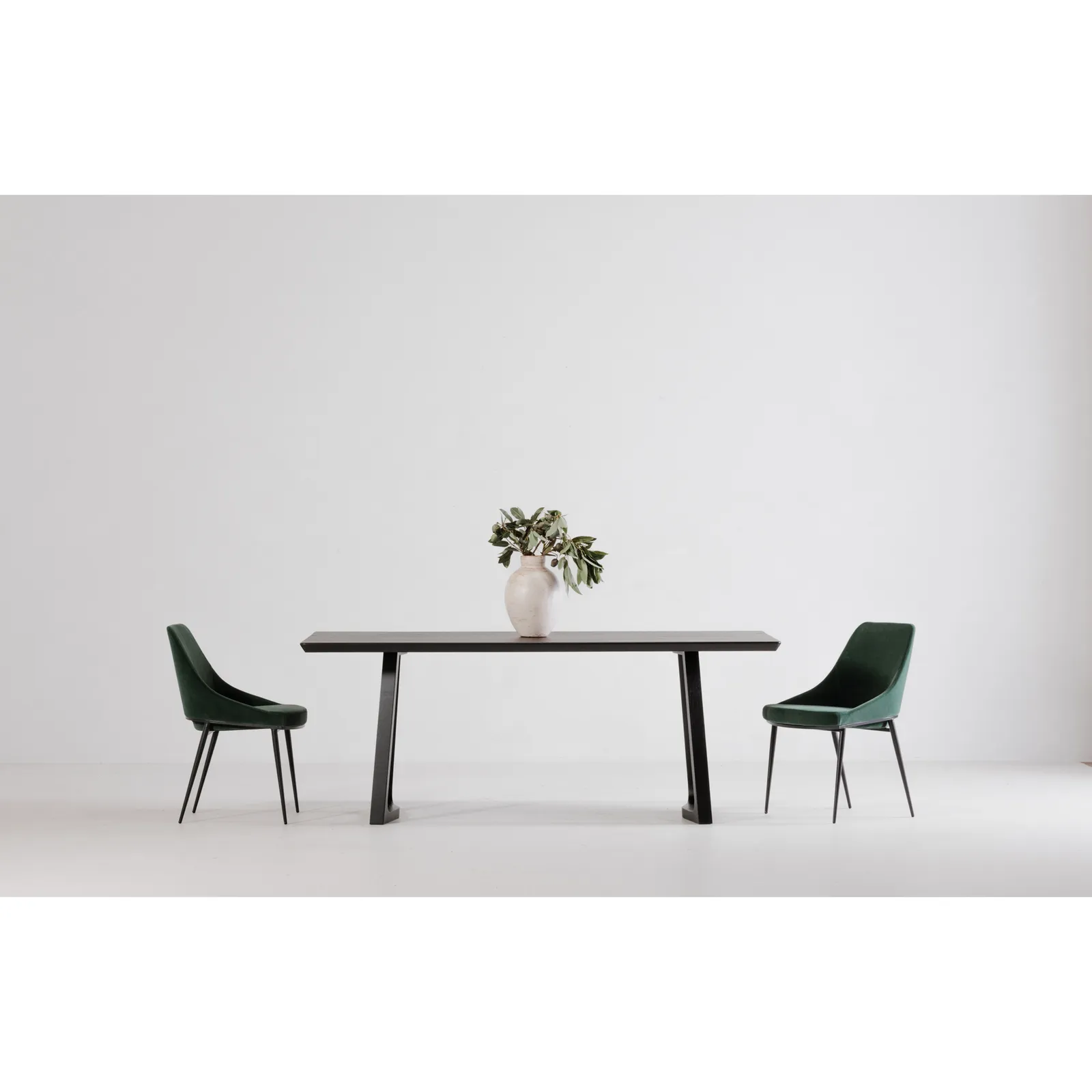 Crafted from solid white ash with a blackened finish, Silas’ bold, dramatic dining aesthetic speaks for itself. Featuring grain patterning, swirls, and beautiful coloring that ensures no two tables are exactly alike. This mid-century modern classic features an airy base and rectangular tabletop design that will gently fit any style, open-plan dining rooms or country-style kitchen.