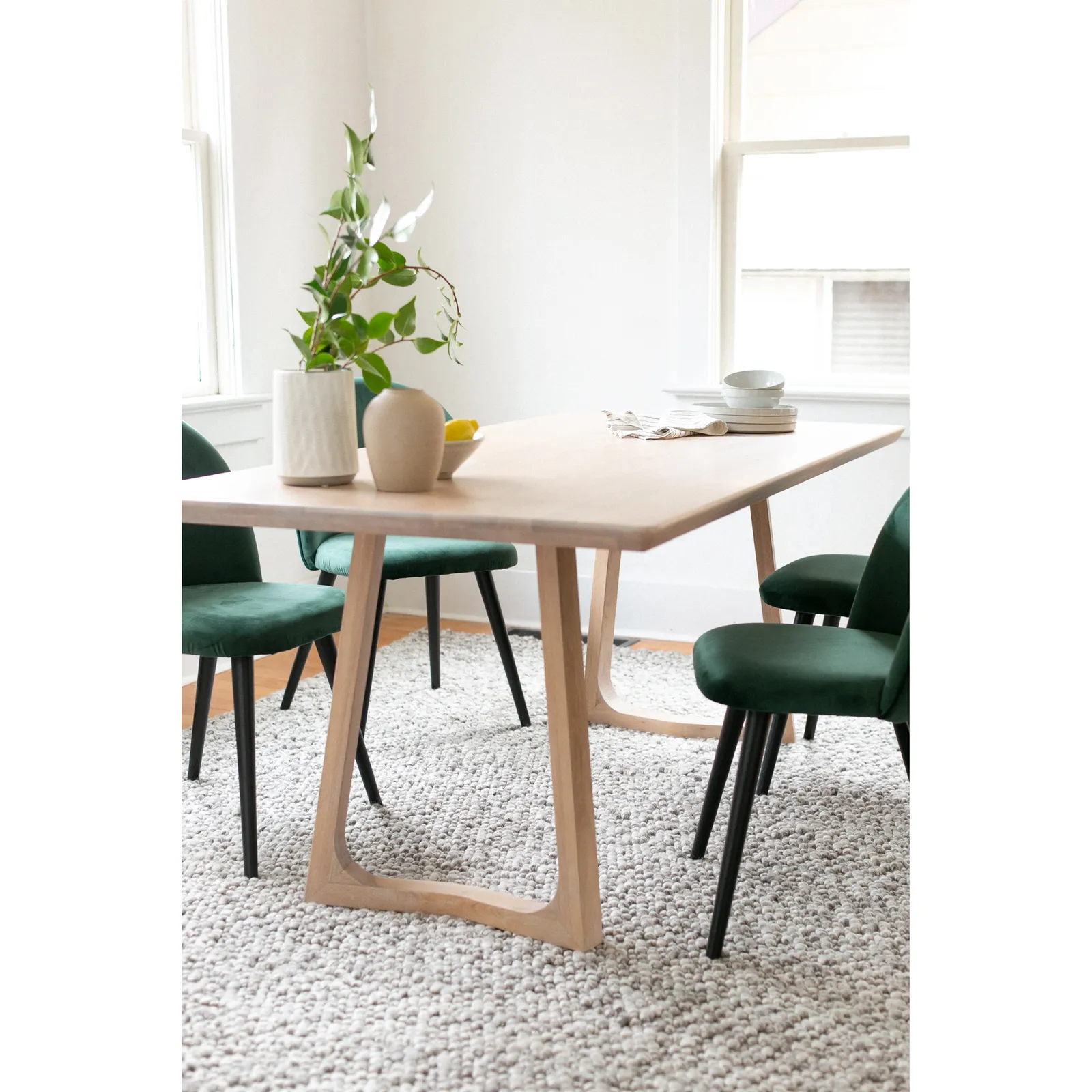 The dining table is like the heartbeat of the home. Silas is here to uplift, brighten up your dining aesthetic, and bring the family together with its 8-person seating. Crafted from solid white oak with a whitewash finish, we let this dining table speak for itself. Oh-so-natural with knots, grain patterning, swirls, and beautiful coloring ensures that no two tables are exactly alike. This contemporary modern classic features an airy base and long tabletop design that will gently fit any decor style, open-plan dining rooms, or country-style kitchen. This item is also available in a smaller, round design, ideal for condo or small-space living.